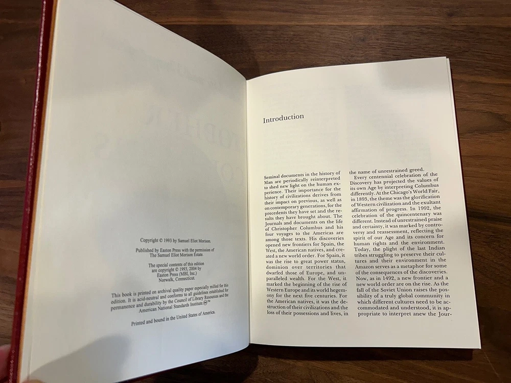 Samuel Eliot Morison - The Life and Voyages of Christopher Columbus - Special Edition / Easton Press Hardcover Norwalk, Connecticut Easton Press, Leather Bound Limited Edition . Book accented in 22kt gold. Printed on archival paper with gilded edges. S ilk ribbon page marker. Smyth sewing and concealed muslin joints to ensure the highest quality binding. This book is in full leather with hubbed spines. Book in amazing like new condition. See pics for details.
