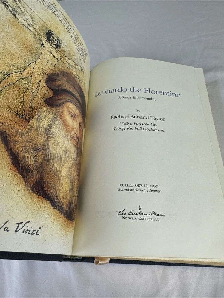 Easton Press - Leonardo the Florentine by Rachael Annand Taylor - DaVinci Light staining to the page edges and inside front/back cover pages. The book is otherwise in very good+ condition comes with o...