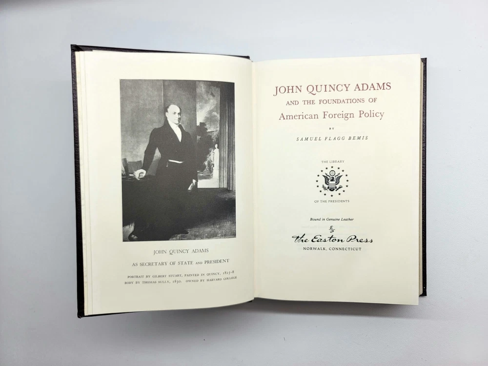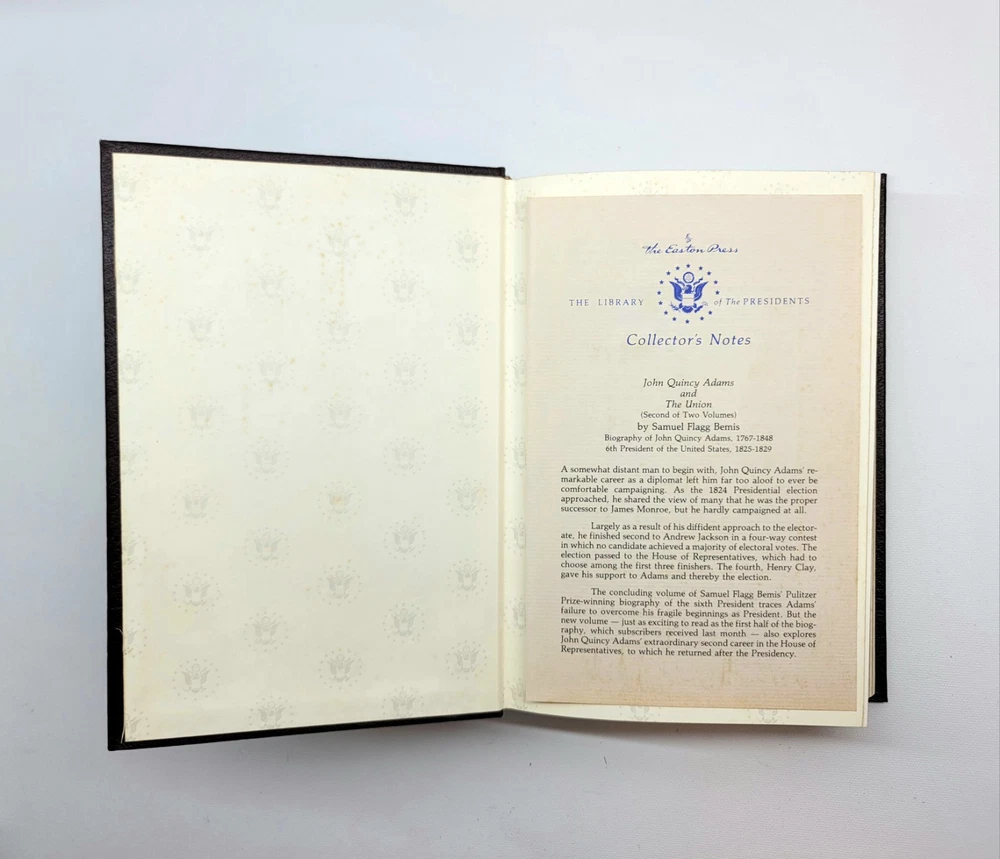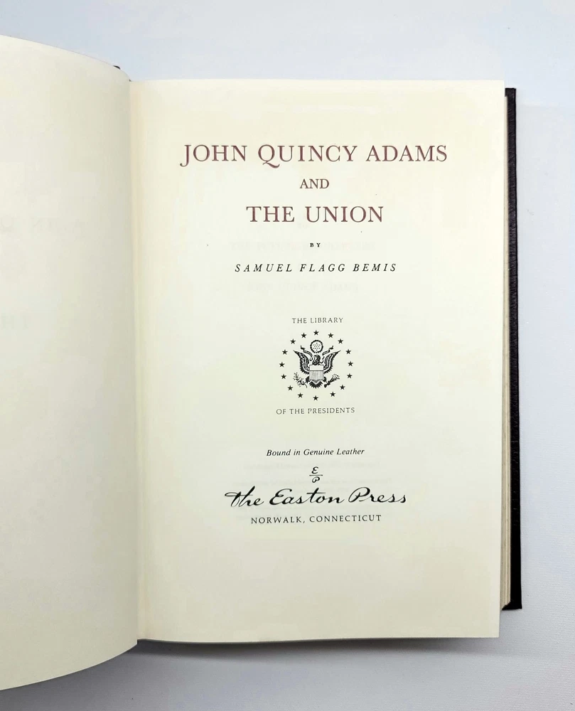 Easton Press Library of the Presidents John Quincy Adams Samuel Bemis 2 Vols Leatherbound, Copyright 1987 Good condition. There is some minor shelf wear and scuffing to the gilding on the book cover. Please utilize pictures to determine the exact condition of each item. If you have a question, please send a message, and I will answer you promptly. Thanks for looking.