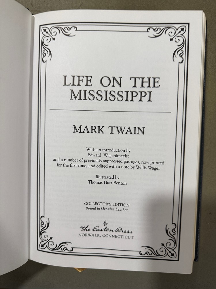Life on the Mississippi by Mark Twain Easton Press from Complete Works Set New Books get listed daily !!! 100s of Easton Press and Franklin Library books available!! All books get cleaned with a leather cleaner to remove any dust, odor and restore the beauty of leather!! Combined Shipping Discount: USA buyers - every book $1 off International combined shipping: 1 or 2 books - $45 3 or 4 books - $75 5 + books $17 per book 10+ books $13 per book WE SHIP DAILY!! RETURNS: Hassle-Free 30-days return policy and we pay for a return !! Check our Inventory (Link to eBay Store): http://stores.ebay.com/EastonFranklinBooks