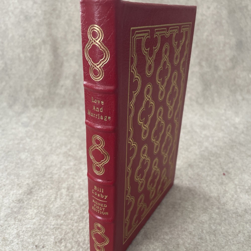 Easton Press Signed First Edition Love and Marriage by Bill Cosby The book is full leather. It is signed by the author. This book is in near mint condition with no wear. The gold on the covers looks like new. The end pages show light fading. The gilt on the edge of the pages is in almost perfect condition with a scratch on the side. Please see photos. We try to describe as accurately as possible so you will be satisfied with your purchase. We have more books from this set on eBay and we would be happy to combine on shipping to save you money. All books are sent with insurance via USPS Media Mail.