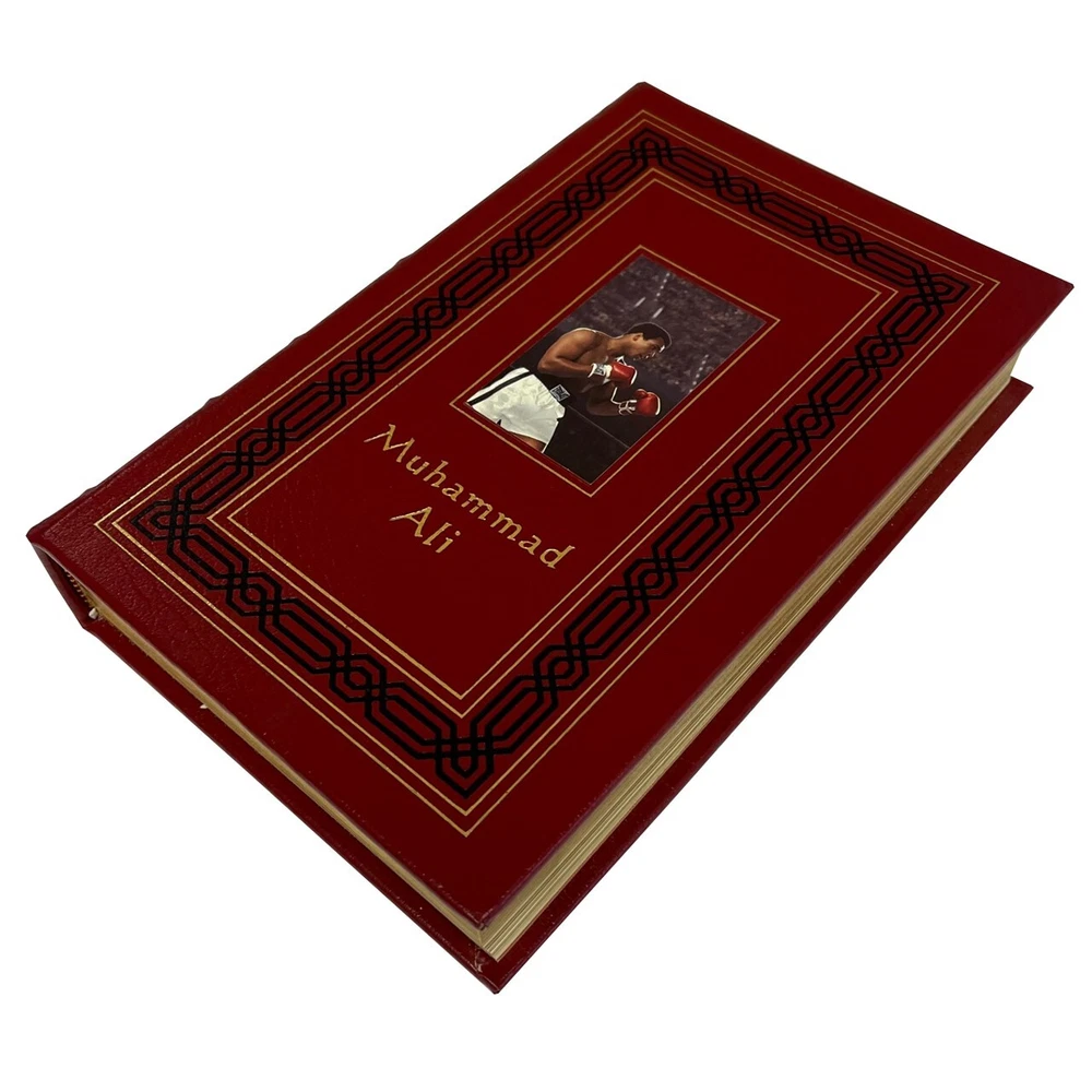 FREE EXPRESS SHIPPING WORLD -WIDE Easton Press Leather Bound © 1996 "Muhammad Ali: His Life and Times" Signed Limited Edition #3,009 of only 3,500 (Very Fine) In the words of the great Muhammad Ali: "Success is not achieved by winning all the time. Real success comes when we rise after we fall. Some mountains are higher than others. Some roads steeper than the next. There are hardships and setbacks but you cannot let them stop you. Even on the steepest road you must not turn back". The perfect gift for the collector of rare autographed sports books. A luxurious leather bound collector's edition, published by Easton Press and personally signed by "The Greatest", Muhammad Ali. A gorgeous dark red leather Numbered Limited Edition, also signed by the author, Thomas Hauser. Limited to 3500 signed & numbered copies. Illustrated with numerous historic black & white photographs. Original publication date 1996. Condition VERY FINE- with a couple of very minor marks to the gilded page edges. Otherwise a new copy without any flaws. No bumped corners and free of any writing, marks, scratches or blemishes. A wonderful bright clean copy. The graphics are clear and not faded. About Ali was the first man to win the heavyweight title three times and he revolutionized the sport of heavyweight boxing. In 1990, Muhammad Ali was introduced into the International Boxing Hall of Fame. Widely regarded as one, if not THE, best heavyweight fighters who ever lived, Ali's biography is an important book signed by an important world figure. As Cassius Clay, Ali won the light heavyweight gold medal at the 1960 Olympics and began the road to a highly successful heavyweight career. In 1964, Ali surprised the world by beating Sonny Liston and after the fight he changed his name to Ali after adopting Islam. Ali's title was stripped from him in 1967 when Ali refused the draft but he regained it, eventually, in 1974 by beating George Foreman. Ali successfully defended his title several times until the early 80's when his career was over Editorial Reviews A detailed, if hagiographic, account of Ali's public career and private life. Hauser (author of one of the best books ever on the fight game, 1985's Black Lights) is an obvious and uncritical fan of Ali's, whom he apotheosizes early on as "the most recognizable person on earth.'' In aid of what might be called oral biography, Hauser draws on over 200 sources--acquaintances, associates, opponents, friends, enemies, blood relations, and celebrity observers of the sometime title-holder--to create a composite portrait that's longer on sympathetic assertions than reflective insight. The ranks of the commentators include the oddly coupled likes of: Cassius Marcellus Clay, Sr. (Ali's dad); Joe Martin (the Louisville cop who taught Ali to box); Olympic teammates; Atallah Shabazz (the daughter of Malcolm X who helped convert Ali to the Nation of Islam); trainer Angelo Dundee; Jimmy Carter; Leon Spinks; George Plimpton; Sylvester Stallone; referee Arthur Mercantee; Chuck Wepner (a human punching bag widely known as ``The Bayonne Bleeder''); and Carl Walker (the black assistant attorney general who tried to make the federal case against Ali for draft evasion). Overall, Hauser does a good job of marshaling a wealth of facts into a cohesive whole and providing behind-the-scenes glimpses of a ring lion in the autumn, if not winter, of his years. Throughout, however, the author makes almost no attempt to conceal the genuine regard and admiration he feels for his subject. A walkover for Ali but a disappointment for those with even a passing interest in the sweet science's grittier realities.