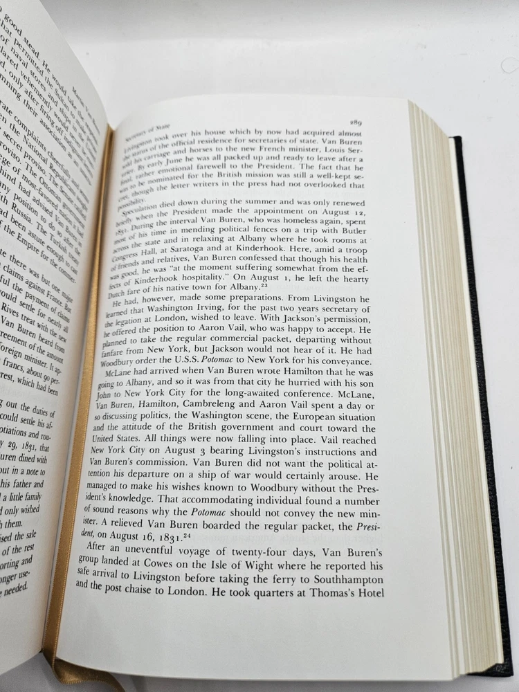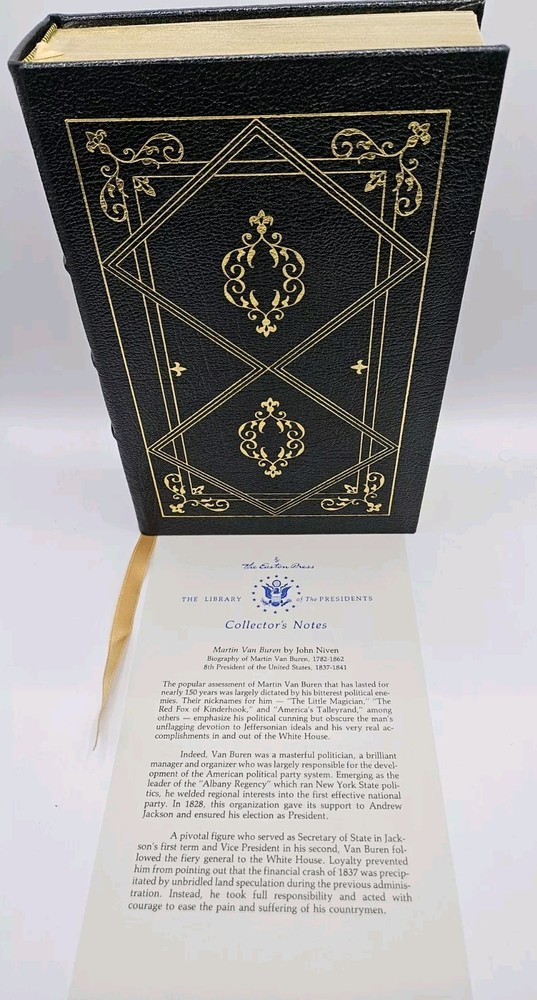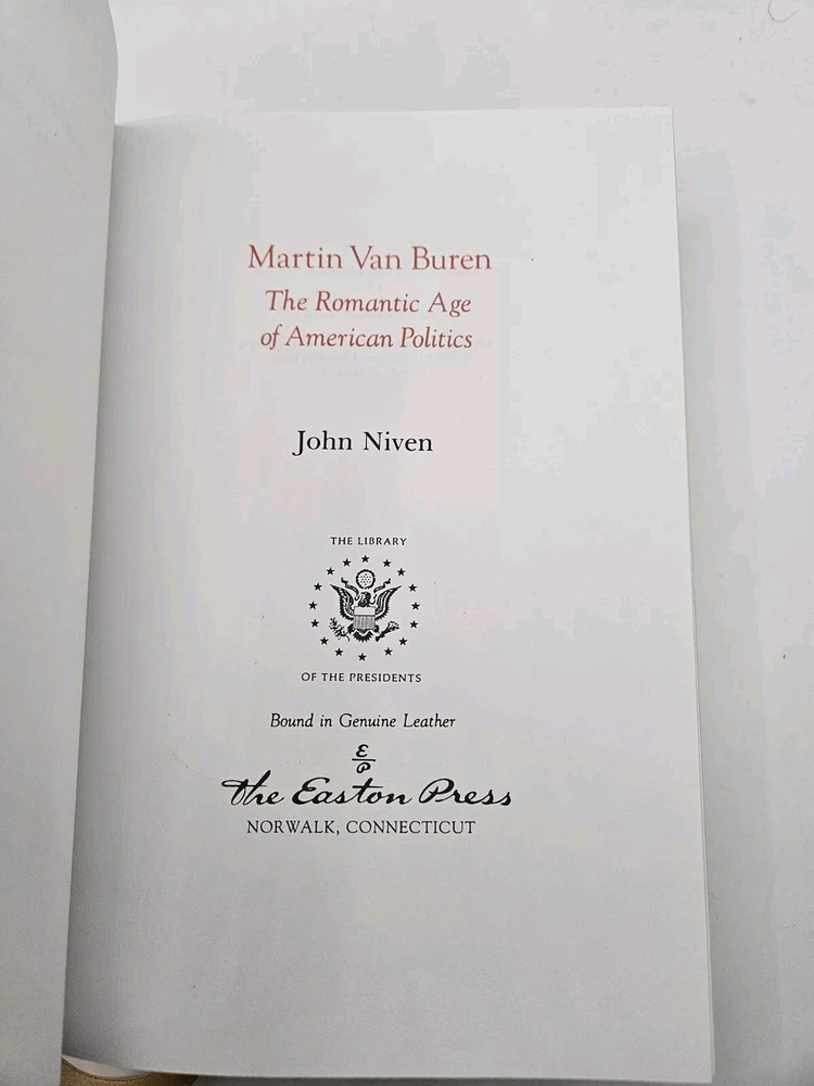 This Easton Press book is a must-have for any collector of historical works. With a beautiful leather binding and 22kt gold accents, this book is a true gem. The ribbon bookmark and collector's notes add to its value, making it a unique addition to any library. Written by John Niven, this biography and autobiography of Martin Van Buren is a fascinating read. Published in 1986, it is a great example of a high-quality book from Easton Press. The book is in English, and it was printed in Connecticut, United States. This book is not personalized and is not signed, but it is a great choice for anyone interested in historical topics.