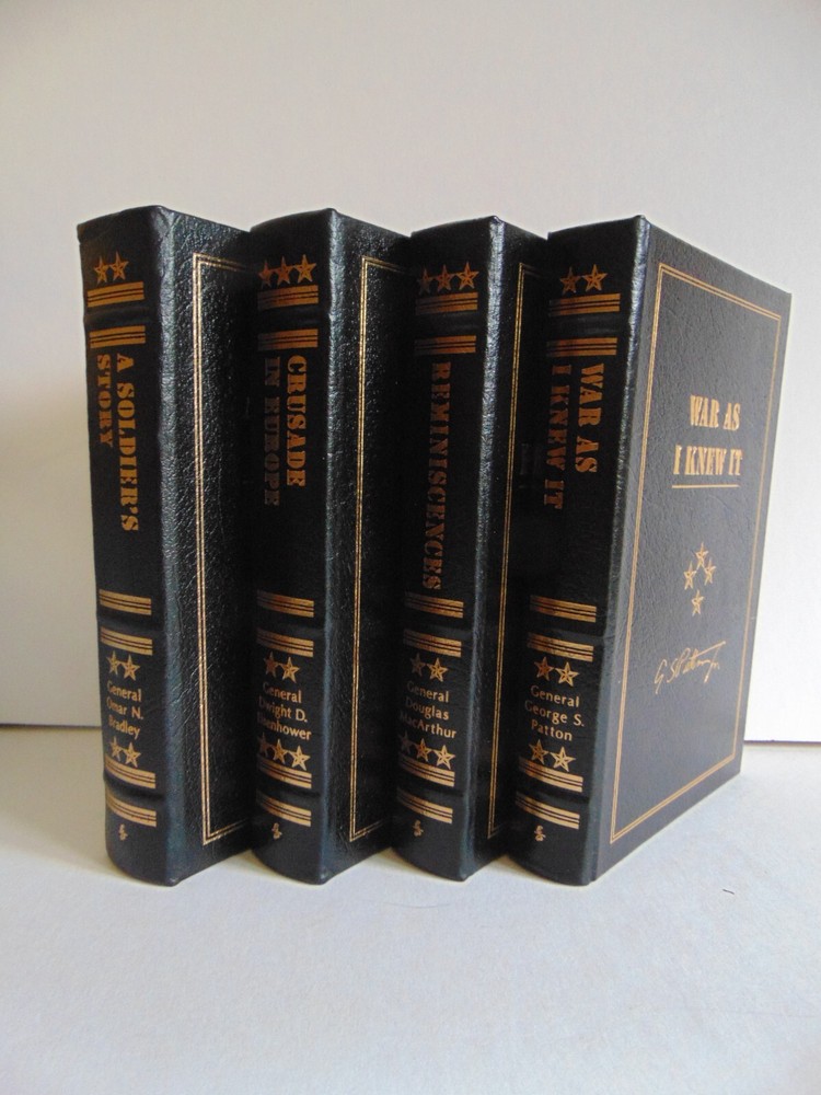 Easton Press Memoirs of World War II Generals (Four-Volume Set) Includes the following titles: Reminiscences Crusade in Europe A Soldier's Story War as I Knew It By Douglas MacArthur; Dwight D. Eisenhower; Omar N. Bradley; George S. Patton This four-volume Easton Press set is in very good condition with only minor shelf wear. There is some minor age wear to the tops of the page end gold gilding. Three books have a filled-in bookplate inside the front cover. The book will be carefully packaged for shipping. Please ask any questions prior to bidding. If you win multiple items, please wait for an invoice before paying otherwise we may not be able to combine shipping costs. (We will do our best to combine shipping however we will not hold items for an extended period of time.) NO international shipping. NO freight forwarding addresses. US orders only!