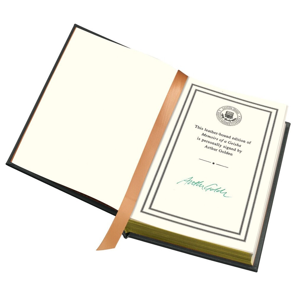This is a Signed Edition of “ Memoirs of a Geisha” by Arthur Golden . Published in Easton Press fine leather binding, and stamped on the spine with 22kt gold. ***Brand New Sealed*** ~~~~~~~~~~~~~~~~~~~~~~~~~~~~~~~~~~~~~~~~~~~~~~~~~~~~~~~~~~~ What’s it about? Memoirs of a Geisha enters a world where appearances are paramount; where women are trained to beguile the most powerful men; and where love is scorned as illusion. It is a unique and triumphant work of fiction that is romantic, suspenseful, and completely unforgettable. ~~~~~~~~~~~~~~~~~~~~~~~~~~~~~~~~~~~~~~~~~~~~~~~~~~~~~~~~~~ Condition: Brand New Factory Sealed. Please see photos for additional information on condition. All books sold as is. Only pictures showing the sealed book are mine. The others are stock photos from Easton Press of the artwork within the book. Reference ID: 1159EPYFSGE11