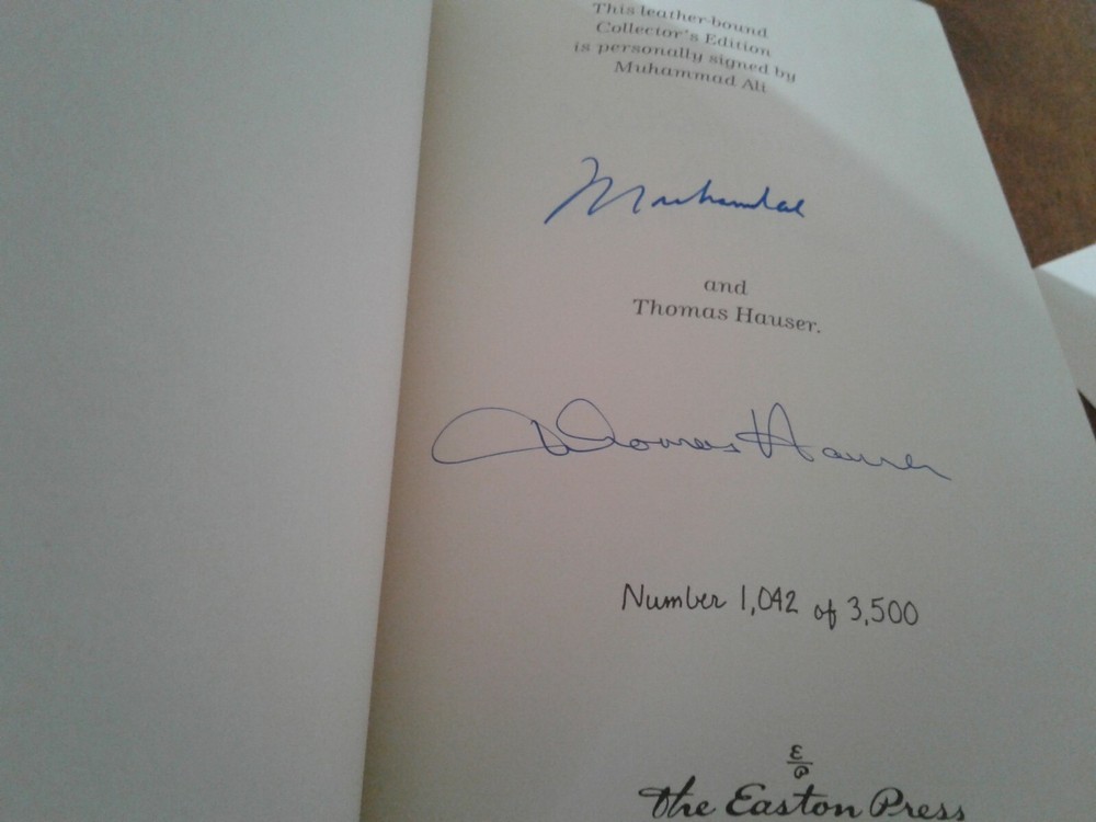 You are bidding on 1 (one): Muhammad Ali : His Life and Times Limited Edition Genuine Leatherbound Hardcover Published by Easton Press Written by Thomas Hauser Signed by Muhammad Ali & Thomas Hauser Numbered 1042 out of 3500 copies Excellent Condition (see pictures) I will combine shipping to lower the cost Will ship internationally - please inquire
