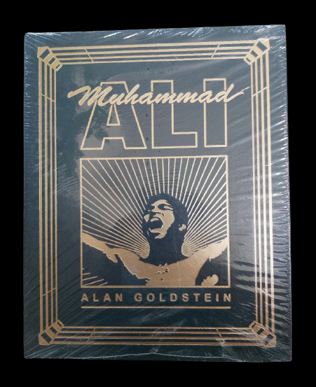 Easton Press - Muhammad Ali by Alan Goldstein Leather Bound Book - FACTORY SEALED! This book tells the exceptional story of boxing legend Muhammad Ali through the words of those who knew him and saw him fight – spoken by those who were there as Ali's incredible story unfolded, both inside and outside the ring. Lavishly illustrated with black and white and colour photographs throughout. Hardcover, 12” x 9.5”, 176 pages including Bibliography. Gilt lettering and distinct 'E/P' [Easton Press] emblem on spine. Foreword by George Foreman. ♦ Fully and tightly bound in genuine leather. ♦ 22kt gold accents deeply inlaid on the "hubbed" spine. ♦ Heavy duty binding boards enhance the book’s durability. ♦ Superbly printed on acid-neutral paper that lasts for generations. ♦ Sewn pages – not just glued like ordinary books. ♦ Handsome moiré end pages and a satin-ribbon page marker. ♦ Gilded page ends. ♦ Printed and bound in the USA. ♦ Superb craftsmanship and commitment to quality. Easton Press editions are printed on sturdy, acid-neutral paper specially milled for this edition that conforms to all guidelines established for permanence and durability by the Council of Library Resources and the American National Standards Institute.