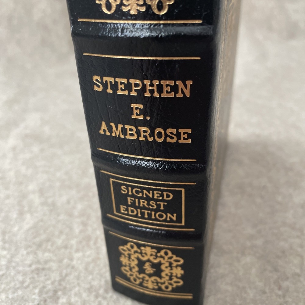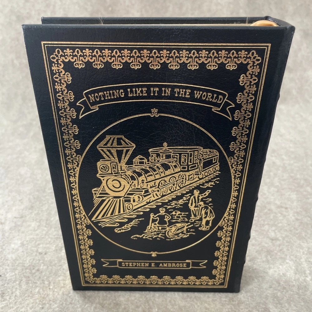 Easton Press Signed First Edition Nothing Like It in the World by Stephen E. Ambrose The book is full leather. It is signed by the author and comes with a COA. This book is in near mint condition with no wear. The gold on the covers looks like new. The end pages show no fading. The gilt on the edge of the pages is in almost perfect condition with a scratch on the bottom. Please see photos. We try to describe as accurately as possible so you will be satisfied with your purchase. We have more books from this set on eBay and we would be happy to combine on shipping to save you money. All books are sent with insurance via USPS Media Mail.