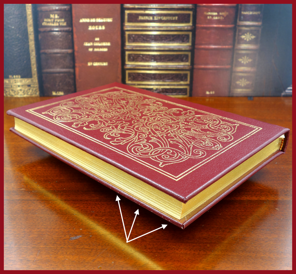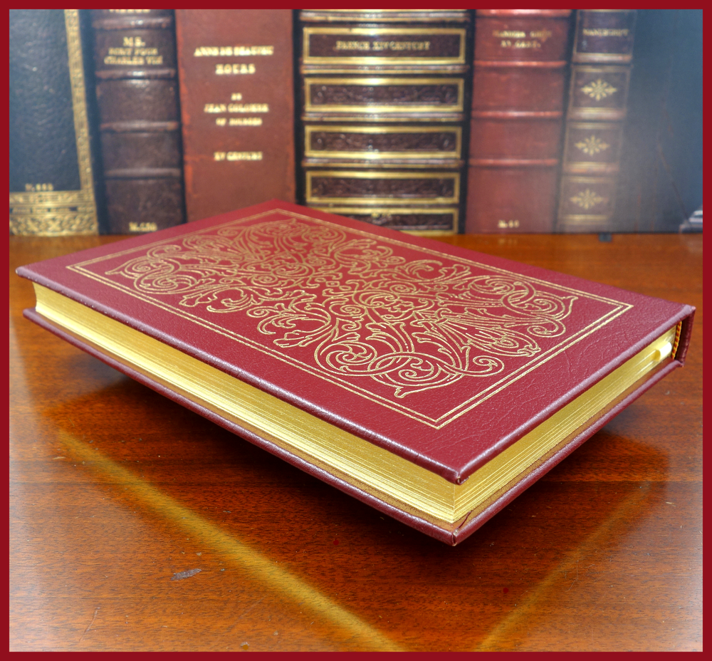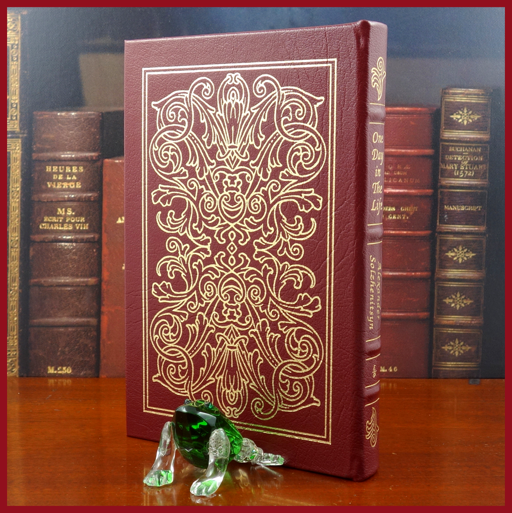 We recently purchased a large collection of Easton Press books to be listed in the coming weeks. Stay tuned for the chance to pick up some collectible titles. This text was featured in the Easton Press series Great Books of the 20th Century. Published in 1988, bound in handsome Burgundy leather, and with a beautiful frontispiece illustration by Richard Sparks, this edition would be a worthy addendum to your collectibles library. Specifics of this series from the Easton Press website: Fully and tightly bound in genuine leather 22kt gold accents deeply inlaid on the "hubbed" spine.* Heavy duty binding boards... . Superbly printed on acid-neutral paper... . Sewn pages – not just glued like ordinary books. ...moiré endpages and a satin-ribbon page marker. Gilded page ends. ******************************************************************************************************************* ". . . One Day in the Life of Ivan Denisovich is an undisputed classic of contemporary literature. First published (in censored form) in the Soviet journal Novy Mir in 1962, it is the story of labor-camp inmate Ivan Denisovich Shukhov as he struggles to maintain his dignity in the face of communist oppression. On every page of this graphic depiction of Ivan Denisovich's struggles, the pain of Aleksandr Solzhenitsyn's own decade-long experience in the gulag is apparent—which makes its ultimate tribute to one man's will to triumph over relentless dehumanization all the more moving." ///////////////////////////////////////////////////////////////////////////////////////////////////////////////////////////////////////////////////////// Aleksandr Isayevich Solzhenitsyn (11 December 1918 – 3 August 2008) was a Russian writer and prominent Soviet dissident who helped to raise global awareness of political repression in the Soviet Union, especially the Gulag prison system. . . . While serving as a captain in the Red Army during World War II, Solzhenitsyn was arrested by SMERSH and sentenced to eight years in the Gulag and then internal exile for criticizing Soviet leader Joseph Stalin in a private letter. . . . As a result of the Khrushchev Thaw, Solzhenitsyn was released and exonerated. He pursued writing novels about repression in the Soviet Union and his experiences. He published his first novel, One Day in the Life of Ivan Denisovich in 1962, with approval from Soviet leader Nikita Khrushchev, which was an account of Stalinist repressions. . . . He continued to work on further novels and their publication in other countries including Cancer Ward in 1966, In the First Circle in 1968, August 1914 in 1971, and The Gulag Archipelago in 1973, the publication of which outraged Soviet authorities. In 1974, Solzhenitsyn was stripped of his Soviet citizenship and flown to West Germany. In 1976, he moved with his family to the United States, where he continued to write. . . . He was awarded the 1970 Nobel Prize in Literature "for the ethical force with which he has pursued the indispensable traditions of Russian literature", and The Gulag Archipelago was a highly influential work that "amounted to a head-on challenge to the Soviet state", and sold tens of millions of copies. The above text was taken from, respectively, Farrar, Straus & Giroux publishing (via Google Books) and Wikipedia. [Solzhenitsyn, Aleksandr. One Day in the Life of Ivan Denisovich: A Novel. United States: Farrar, Straus and Giroux, 2005.]