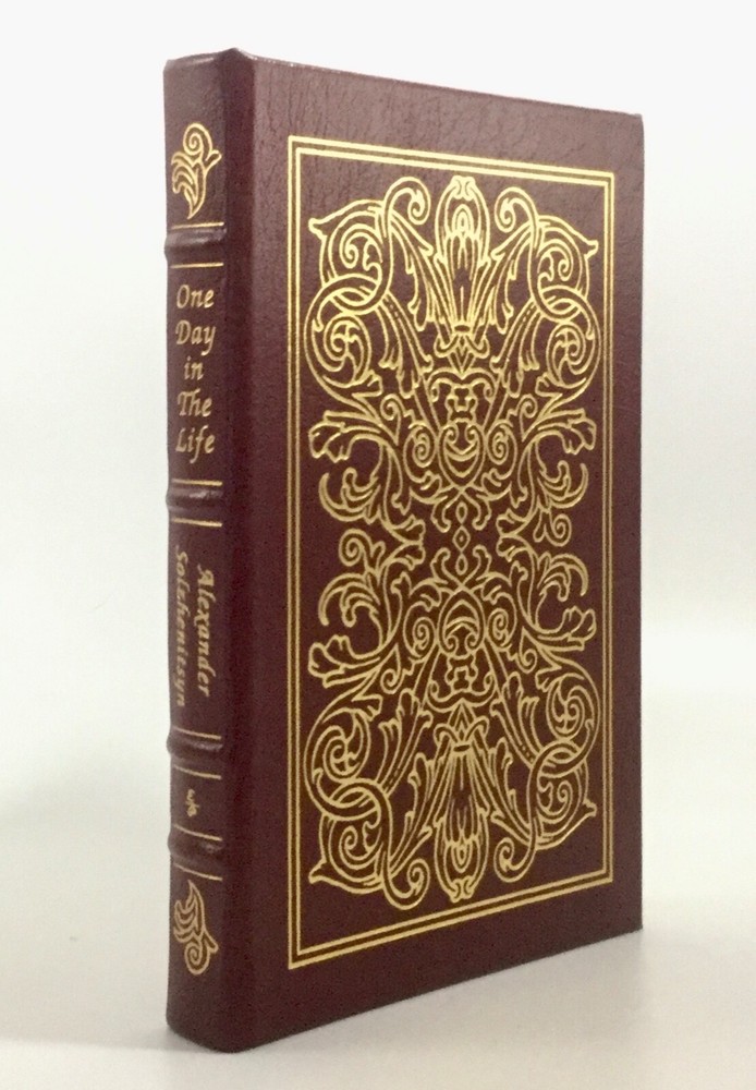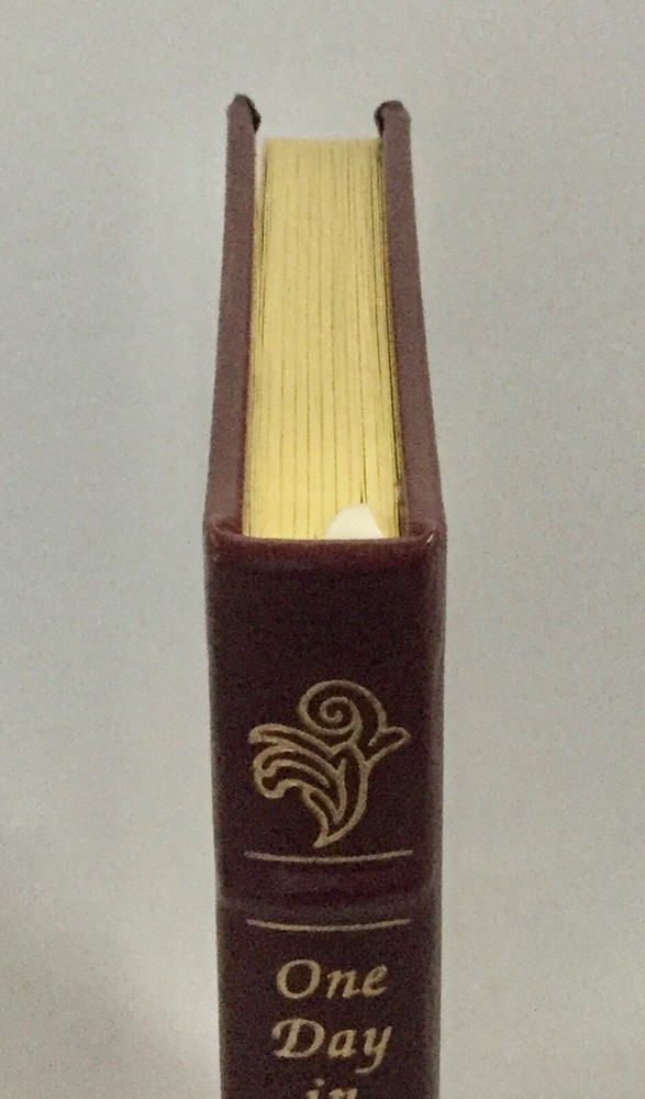 Easton Press ONE DAY IN THE LIFE Alexander Solzhentsyn. Great Books of the 20th Century . 1988 Leather bound with 22kt. gold embossed covers and spine. Moire fabric end paper, gilt page ends, and sati...