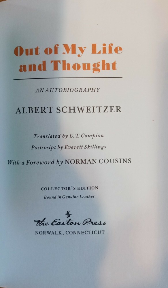 Easton Press Out Of My Life And Thought Albert Schweitzer Leather Collect 1989 Smoke free home...