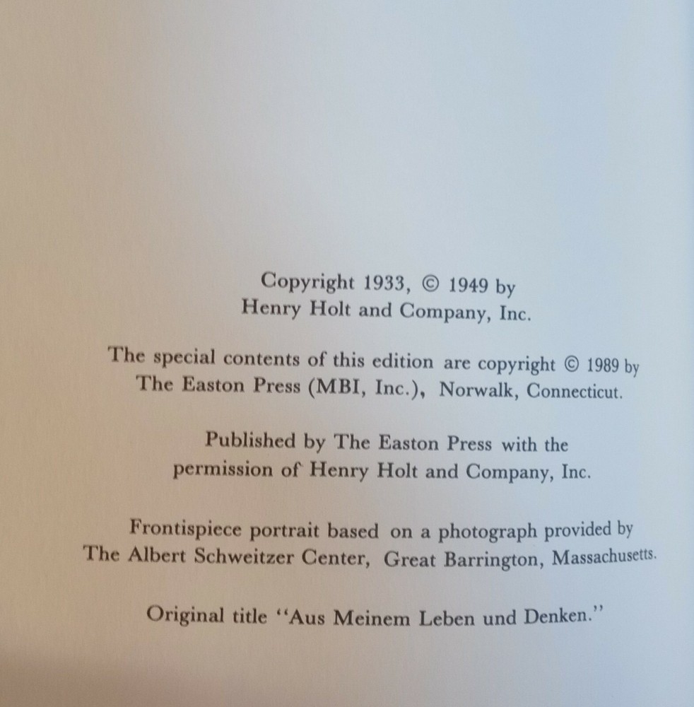 Easton Press Out Of My Life And Thought Albert Schweitzer Leather Collect 1989 Smoke free home