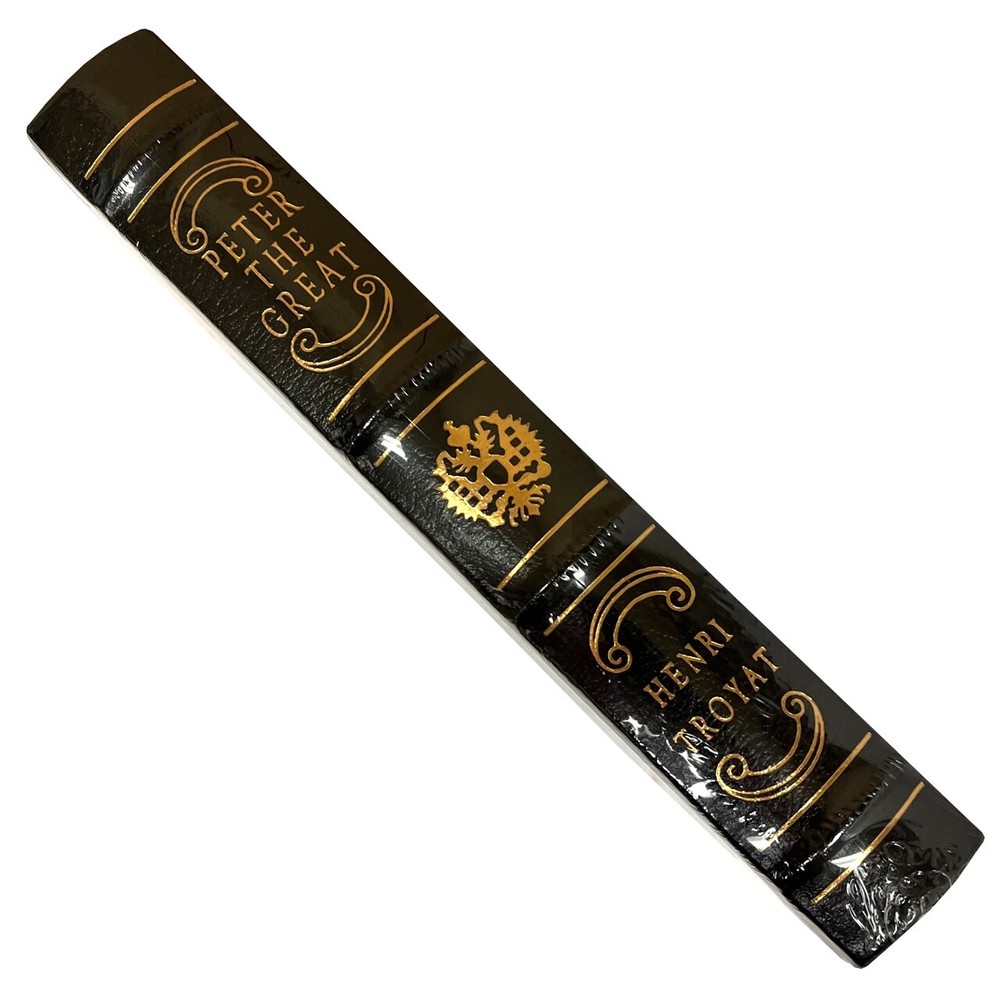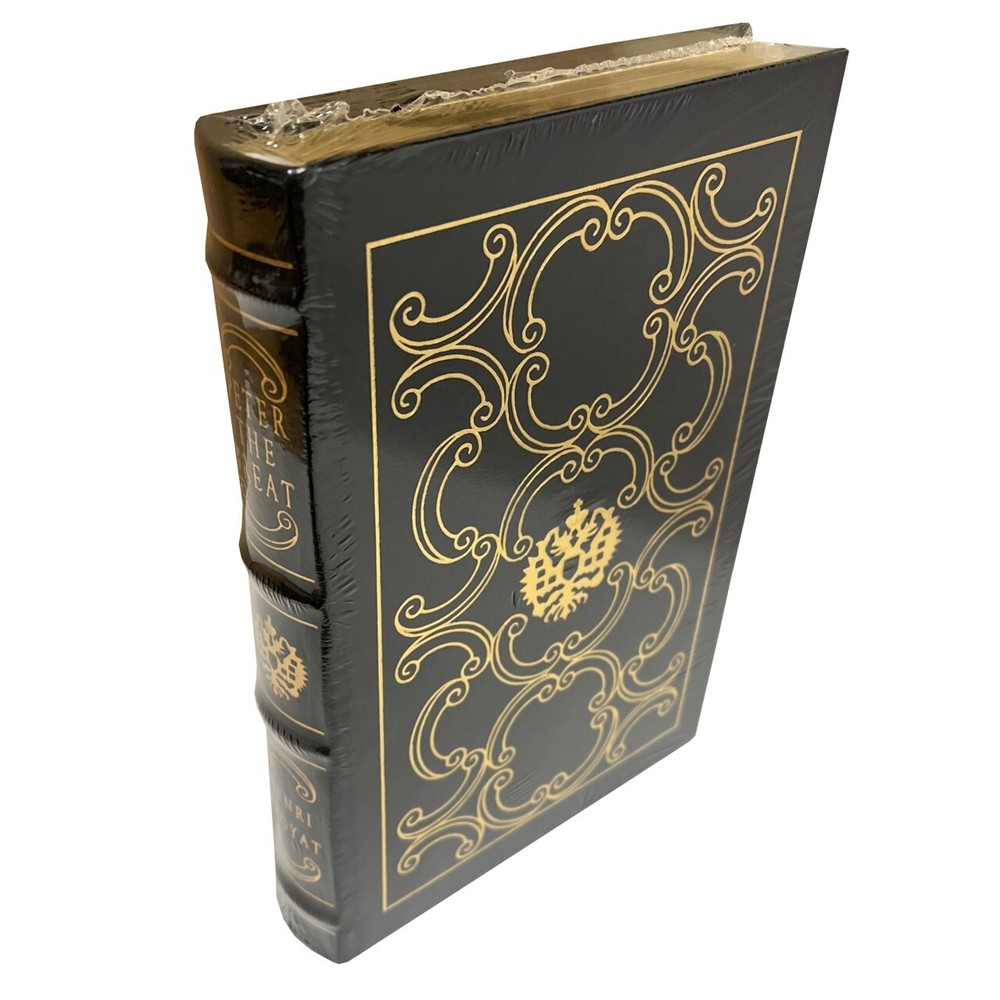 Easton Press, Norwalk CT. 1993 Henri Troyat "Peter the Great" Limited Edition. Full genuine leather. The Library of Great Lives. As New, sealed without any flaws. Russia's Peter the Great, a cruel visionary imbued equally with a fascination for progress and absolute power. About Peter The Great Peter I, most commonly known as Peter the Great, was a monarch of Russia who modernised it and made it a European power. He ruled the Tsardom of Russia from 7 May 1682 to 1721 and subsequently the Russian Empire until his death in 1725, jointly ruling before 1696 with his elder half-brother, Ivan V. Through a number of successful wars, he captured ports at Azov and the Baltic Sea, laying the groundwork for the Imperial Russian Navy, ending uncontested Swedish supremacy in the Baltic and beginning the Tsardom's expansion into a much larger empire that became a major European power. He led a cultural revolution that replaced some of the traditionalist and medieval social and political systems with ones that were modern, scientific, Westernised and based on the Enlightenment.[1] Peter's reforms had a lasting impact on Russia, and many institutions of the Russian government trace their origins to his reign. He adopted the title of Emperor in place of the old title of Tsar in 1721, and founded and developed the city of Saint Petersburg, which remained the capital of Russia until 1918. However, the formation of local elites domestically was not his main priority, and the first Russian university—Saint Petersburg State University—was founded only a year before his death, in 1724. The second one, Moscow State University, was founded 30 years after his death, during the reign of his daughter Elizabeth. Features Includes all the classic Easton Press qualities: * Premium Leather * Silk Moire Endleaves * Distinctive Cover Design * Hubbed Spine, Accented in Real 22KT Gold * Satin Ribbon Page Marker * Gilded Page Edges * Long-lasting, High Quality Acid-neutral Paper * Smyth-sewn Pages for Strength and Durability * Beautiful Illustrations About Henri Troyat Troyat was born Lev Aslanovich Tarasov, (Russian: Лев Асланович Тарасов, Lev Aslanovich Tarasov) in Moscow to parents of mixed heritage, including Armenian, Russian, German and Georgian. According to his autobiography he states that his surname is Armenian (Torossian), while his maternal grandmother was German and his maternal grandfather was of mixed Georgian and Armenian descent. His family fled Russia after the outbreak of the revolution. After a long exodus taking them to the Caucasus on to Crimea and later by sea to Istanbul and then Venice, the family finally settled in Paris in 1920, where young Troyat was schooled and later earned a law degree. The stirring and tragic events of this flight across half of Europe are vividly recounted by Troyat in Tant que la terre durera. His first marriage produced a son before ending in divorce. He later married the love of his life, a widow with a young daughter whom he raised as his own. Troyat received his first literary award, Le prix du roman populaire, at the age of twenty-four, and by twenty-seven, he was awarded the Prix Goncourt. He published more than 100 books, novels and biographies, among them those of Anton Chekhov, Catherine the Great, Rasputin, Fyodor Dostoyevsky, Ivan the Terrible and Leo Tolstoy. Troyat's best-known work is La neige en deuil, which was adapted as an English-language film in 1956 under the title The Mountain. Troyat was elected as a member of the Académie française in 1959. At the time of his death, he was the longest-serving member. Features Includes the classic Easton Press qualities: * Premium Leather * Silk Moire Endleaves * Distinctive Cover Design * Hubbed Spine, Accented in Real 22KT Gold * Satin Ribbon Page Marker * Gilded Page Edges * Long-lasting, High Quality Acid-neutral Paper * Smyth-sewn Pages for Strength and Durability * Beautiful Illustrations