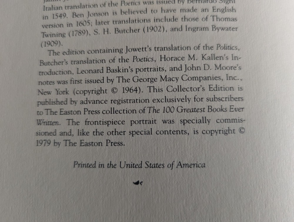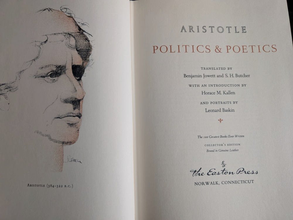 Easton Press, Politics and Poetics by Aristotle, Leather Bound One of the Hundred Greatest Book Series