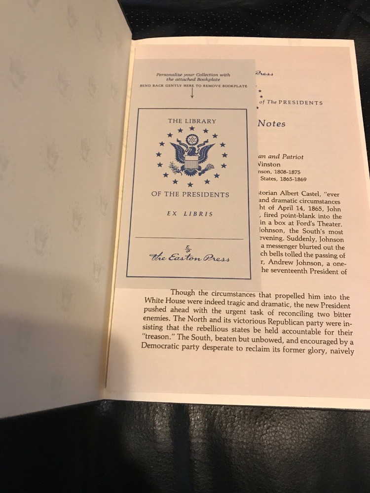 Easton Press The Library of the Presidents Leather Bound Andrew Johnson : Plebeian and Patriot By: Robert W. Winston Excellent condition, No rips,tears or stains. Non smoking home...