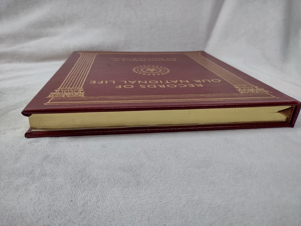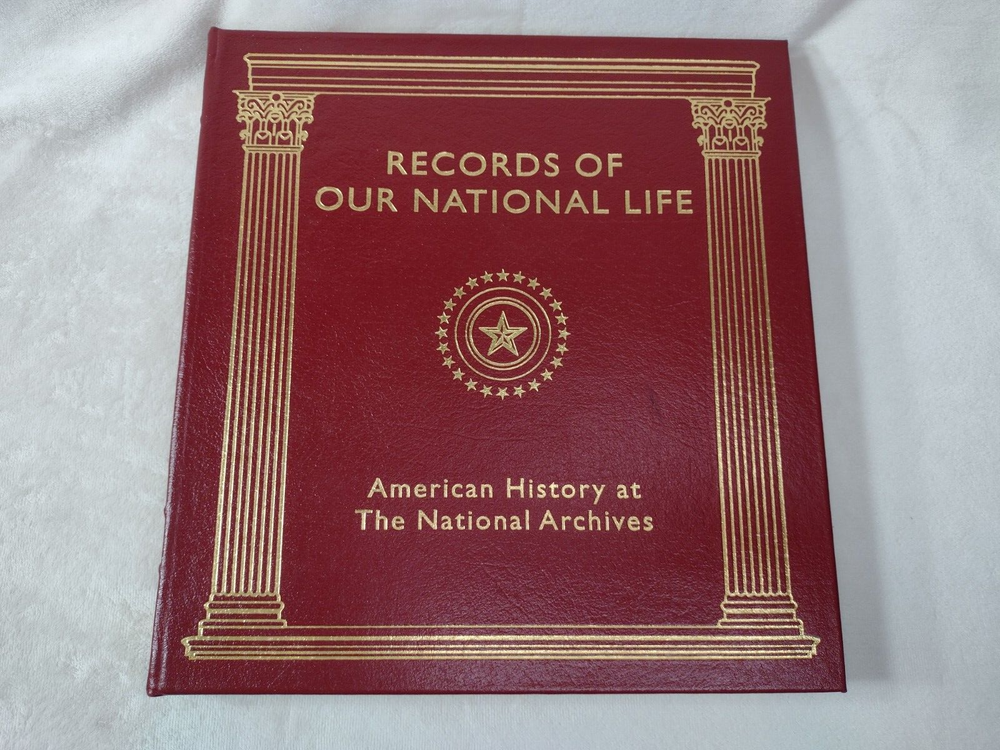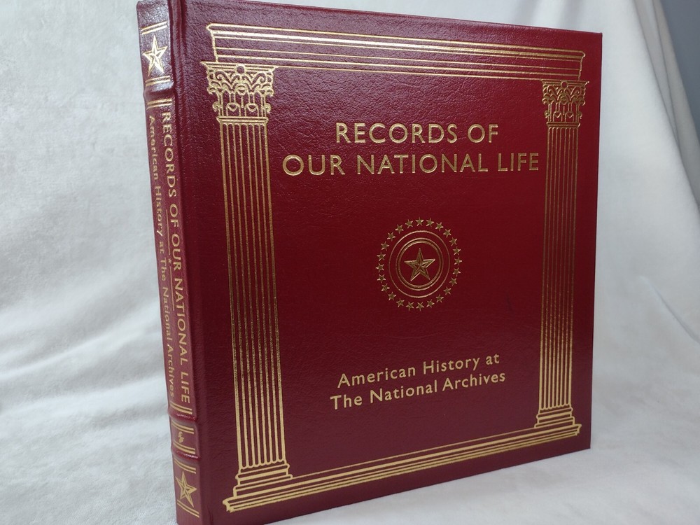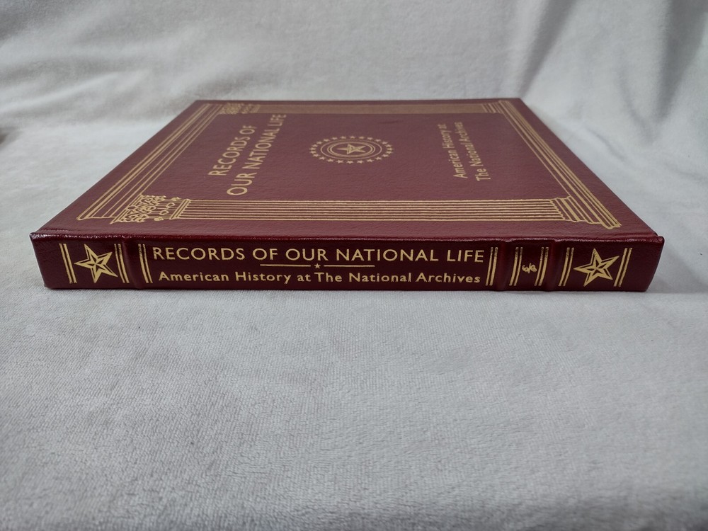 Records of Our National Life: American History at The National Archives Luxury, Easton Press Edition w/ Gold accents, Genuine Leather, Gilt page edges, Moire end pages, Satin page marker Oversized book measuring 11-3/8" x 10-5/8" x 1-1/4" w/ pages. There are a few minor cosmetic imperfections including small black line on front cover, small white mark on back cover, minor gilt page edge imperfections at the base. Please see photos. Tight binding and clean interior. FREE Shipping! *Please also view our many other great book listings!