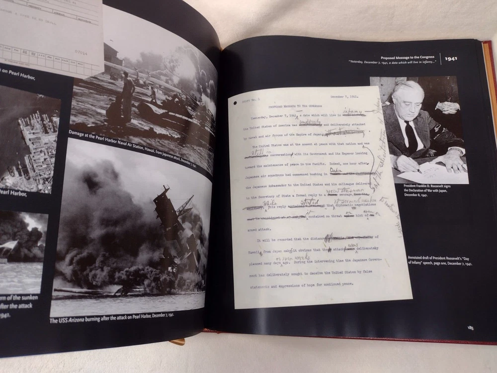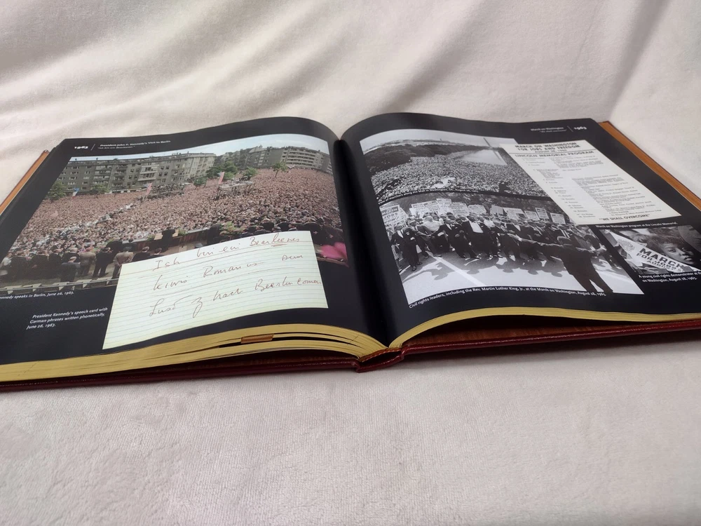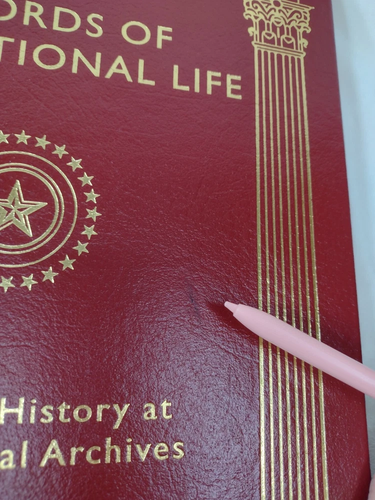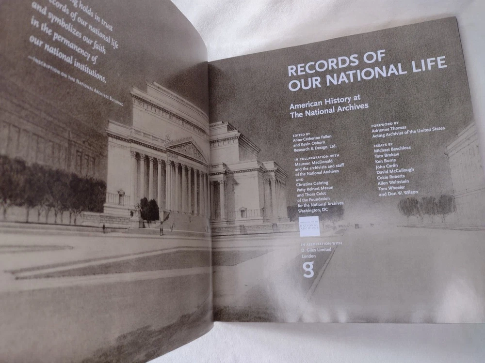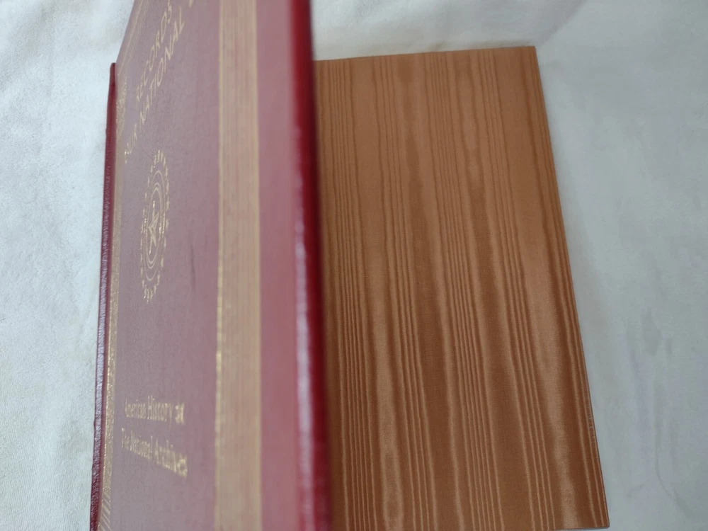 Records of Our National Life: American History at The National Archives Luxury, Easton Press Edition w/ Gold accents, Genuine Leather, Gilt page edges, Moire end pages, Satin page marker Oversized book measuring 11-3/8" x 10-5/8" x 1-1/4" w/ pages. There are a few minor cosmetic imperfections including small black line on front cover, small white mark on back cover, minor gilt page edge imperfections at the base. Please see photos. Tight binding and clean interior. FREE Shipping! *Please also view our many other great book listings!
