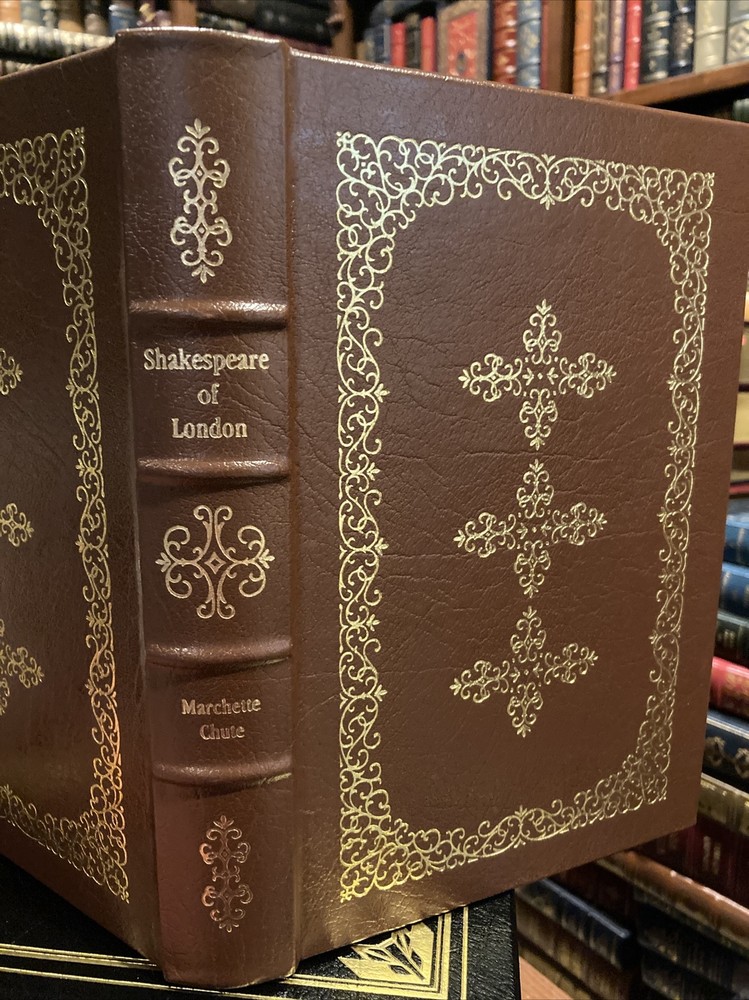 This Easton Press edition of *Shakespeare of London* is a stunning collector's piece. The burgundy leather, Smyth-sewn binding, and gold-gilded edges make it feel luxurious. Marchette Chute’s insightful biography paired with John Houseman’s foreword adds depth. The silk end leaves and satin bookmark are elegant touches. Despite a tiny gilt imperfection, it’s near flawless—a must-have for Shakespeare enthusiasts or fine book lovers. Holding it feels like owning a piece of literary history.