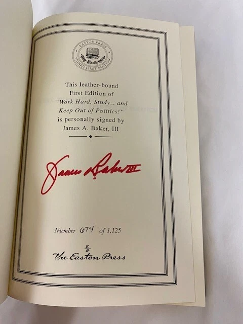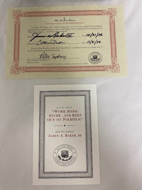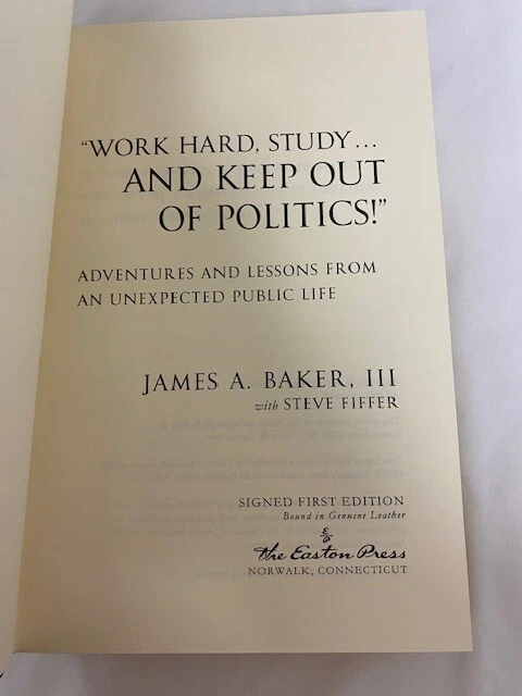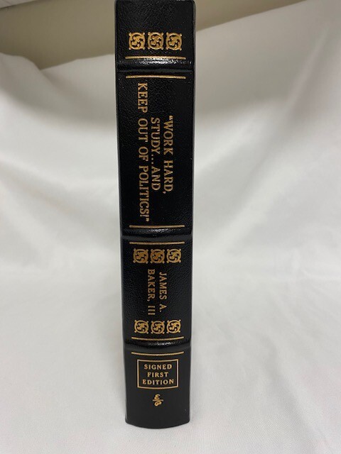 A revelatory memoir by the former secretary of state and White House chief of staff describes his behind-the-scenes witness to numerous political machinations, in an account in which he discusses the Iran-Contra scandal, the Reagan assassination attempt, and the 2000 election in Florida. 460 pages Leather, Hardcover. Signed 1st edition 674 of 1,125 "Like New" condition. Well-kept in smoke free, pet free home