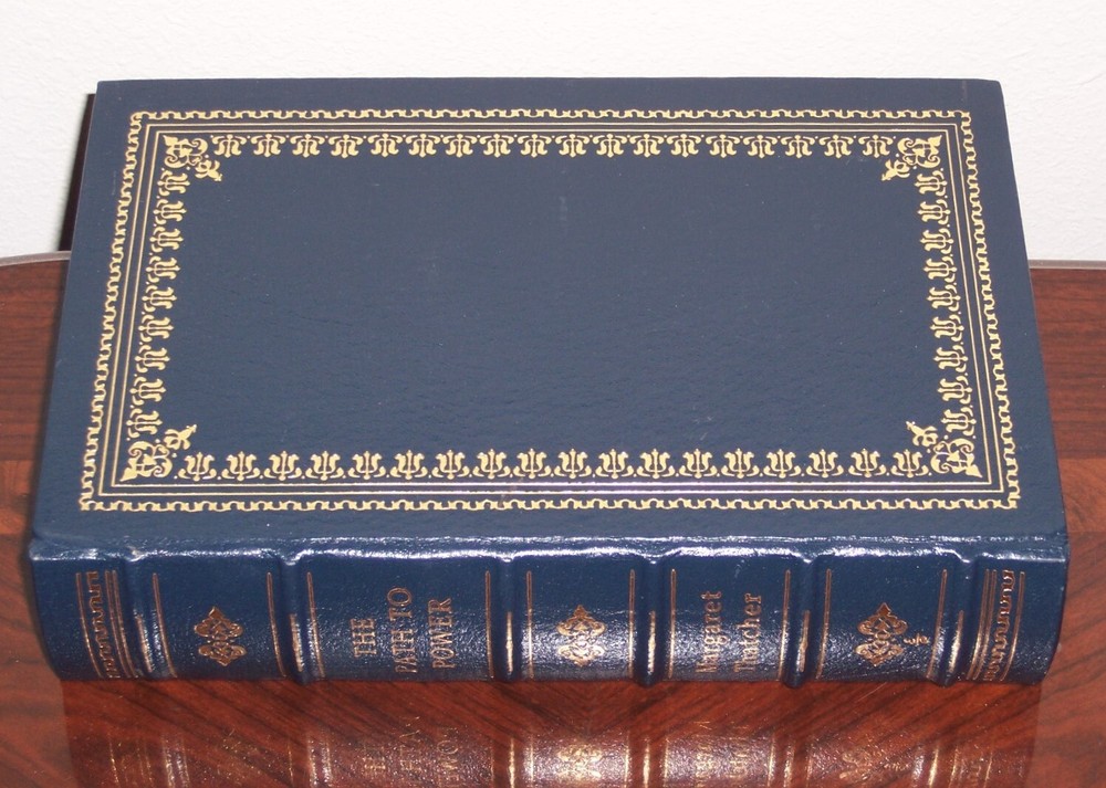 heirloom edition Easton Press PATH TO POWER by Margaret Thatcher personally SIGNED by Margaret Thatcher Distinct cover designs with decorations dimension 6 1/4" x 9 1/2” do not miss out this good deal Copyright by The Easton Press hubbed spine, bound in premium full leathers distinctive cover design, beautiful illustrations handsome, readable typefaces, permanent satin ribbon page marker elegant gilded page edges, endsheets of rich moire fabric thread-sewn pages for durability and strength, long-lasting high quality, acid-neutral paper CONDITION DESCRIPTION: Like new and unread condition, binding is tight and gold page edging still shiny, beautiful bright endleaves and satin ribbon page marker. This set could be a precious addition to your family library. SHIPPING / HANDLING: Book(s) will be handled/packed very safely, and shipped via USPS media mail with delivery confirmation.