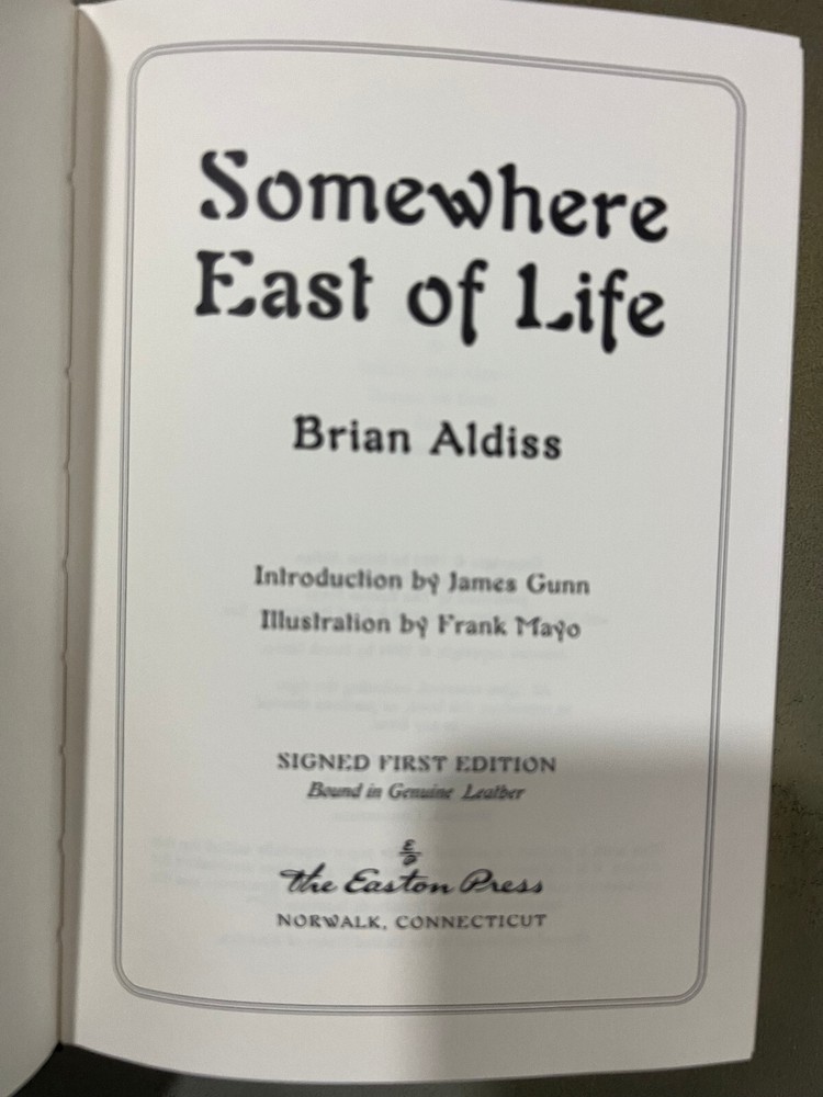 Somewhere East Of Life by Brian Aldiss Signed Easton Press 1st Edition Science Fiction Excellent Condition ! New Books get listed daily !!! 100s of Easton Press and Franklin Library books available!! All books get cleaned with a leather cleaner to remove any dust, odor and restore the beauty of leather!! Combined Shipping Discount: USA buyers - every book $1 off International combined shipping: 1 or 2 books - $45 3 or 4 books - $75 5 + books $17 per book 10+ books $13 per book WE SHIP DAILY!! RETURNS: Hassle-Free 30-days return policy and we pay for a return !! Check our Inventory (Link to eBay Store): http://stores.ebay.com/EastonFranklinBook