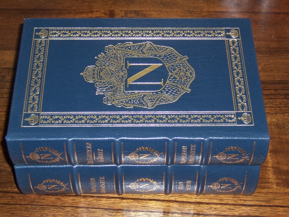 Heirloom Edition Easton Press THE CORSICAN A DIARY & NAPOLEON BONAPARTE in 2 vols by Alan Schom uniform dark blue leather bindings, distinct cover designs measured by 6 1/4" x 9 1/2" Copyright by The Easton Press hubbed spine, bound in premium full leathers distinctive cover design, beautiful illustrations handsome, readable typefaces, permanent satin ribbon page marker elegant gilded page edges, endsheets of rich moire fabric thread-sewn pages for durability and strength, long-lasting high quality, acid-neutral paper LIST OF TITLES: a series in 2 volumes: 1. NAPOLEON BONAPARTE: THE CORSICAN A DIARY of Napoleon's Life in his own words 2. NAPOLEON BONAPARTE by Alan Schom CONDITION DESCRIPTION: Like new and unread condition, binding is tight and gold page edging still shiny, beautiful bright endleaves and satin ribbon page marker. This set could be a precious addition to your family library. SHIPPING / HANDLING: Book(s) will be handled/packed very safely, and shipped via USPS media mail with delivery confirmation.