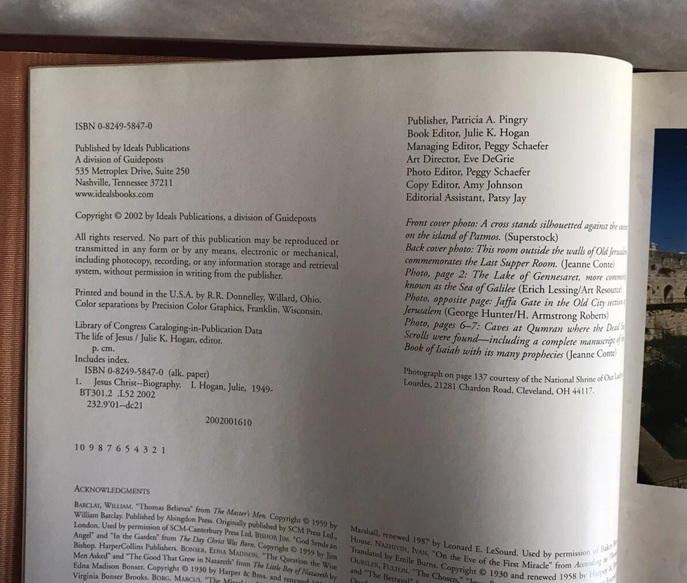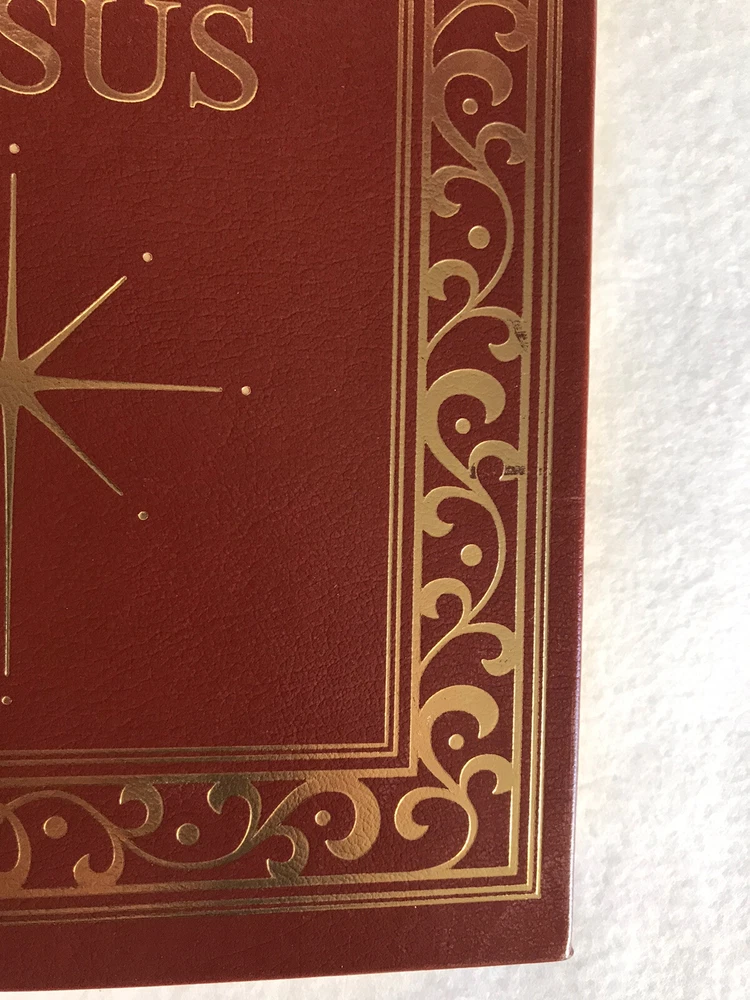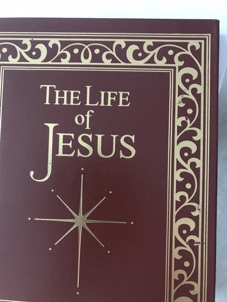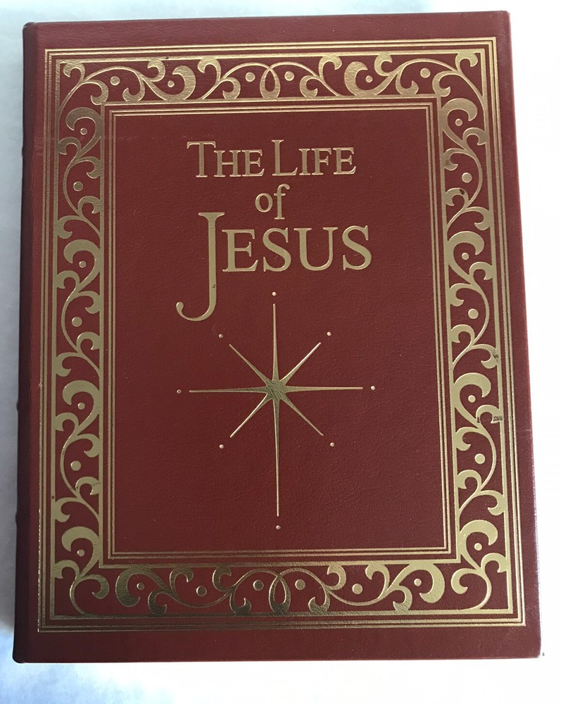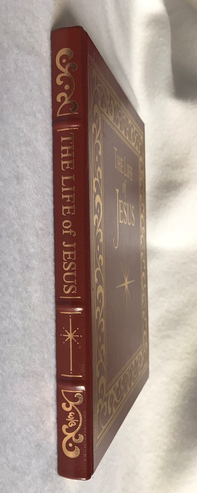Easton Press THE LIFE of JESUS CHRIST Collector’s Edition LEATHER BOUNDThe spine is braced by the traditional raised "hubs" and is embossed with precious 22kt gold, specially milled, acid-neutral paper that will not turn brittle and crumble with ageMoiré fabric end sheets, heavy-duty binding boards and glowing gilded page ends add beauty and durability.Pre owned, in Very Good Condition. Some shelf wear in the bottom cover, and light peeling in the front cover. please see pictures. Please be sure yo look at all the pictures since they are part of the description. More pictures available upon request Thanks for looking!