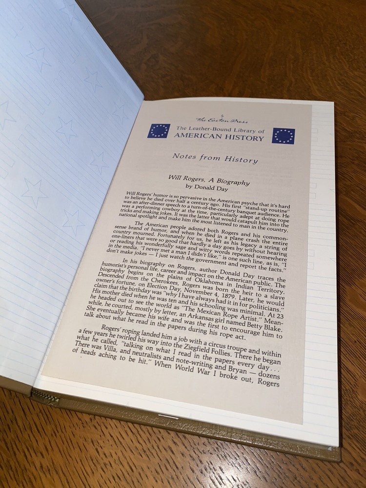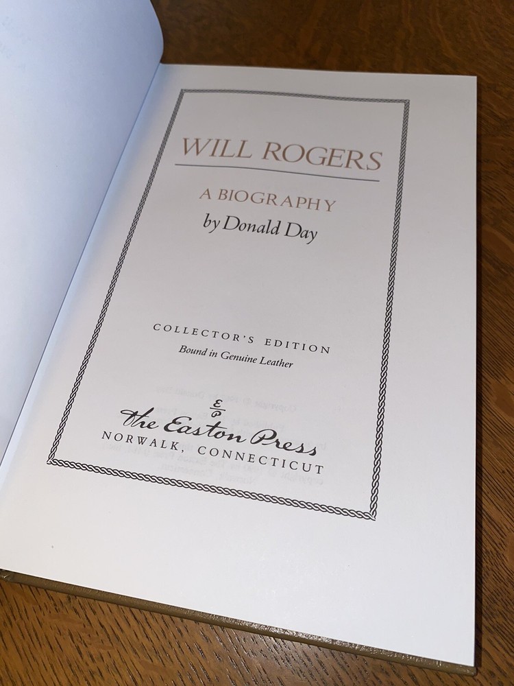 This Easton Press collector's edition biography book about Will Rogers is a true gem for any history enthusiast. The limited edition hardcover binding is crafted with high-quality leather and features an elegant design that is sure to impress. The book is written in English and covers a range of topics related to historical events and figures. The author, Donald Day, is a renowned expert in his field and has created a comprehensive guide to Will Rogers' life and career. This book is a must-have for anyone interested in historical biographies or Will Rogers himself. The unit type is in pounds, and the publisher is Easton Press. This book is a great addition to any collection and is sure to be a prized possession for years to come. Excellent condition. Feel free to contact me if you have any questions.