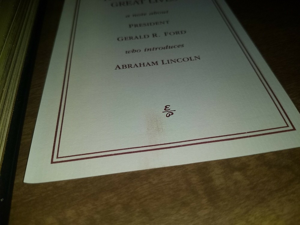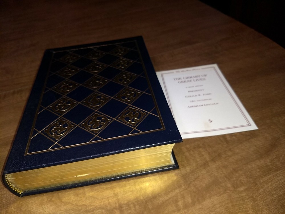 Easton Press With Malice Toward None: The Life of Abraham Lincoln by Oates. Includes note about President Gerald R Ford who introduces Abraham Lincoln. There is a light smudge on the card- please see picture. Otherwise Nice condition. We'll ship in box for protection Shipped with USPS Media Mail.