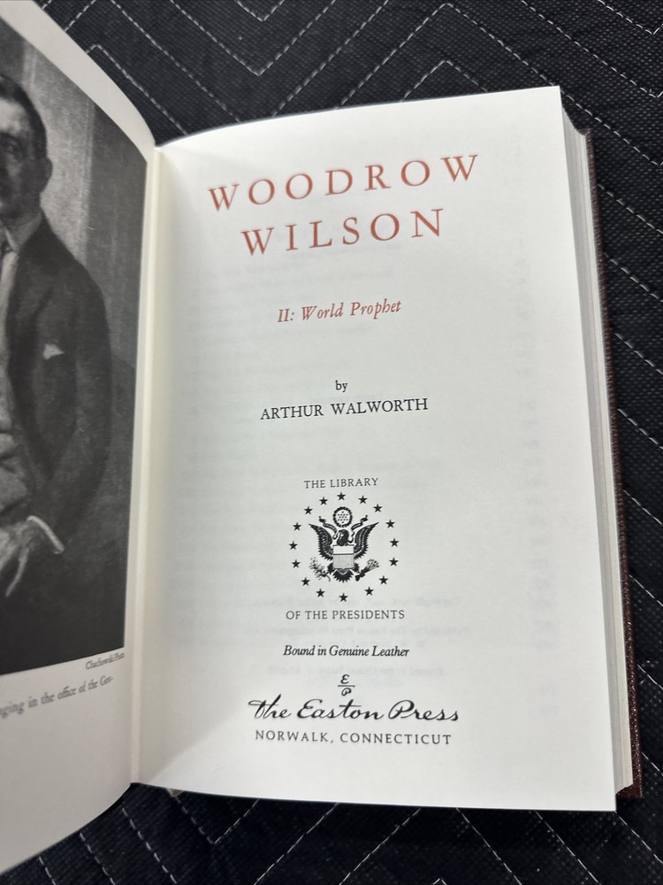 This Easton Press book is a must-have for any collector or fan of Presidential biographies. Written by Arthur Walworth, the book is a 3rd edition printed in 1978. The leather binding is guilted page edges and features the iconic Easton Press logo. The book is in English and was printed in the United States. The book is a great addition to any collection and is perfect for those interested in the life and career of Woodrow Wilson, the former President of the United States. The book is categorized as antiquarian and collectible and is sure to be a valuable addition to any bookshelf.