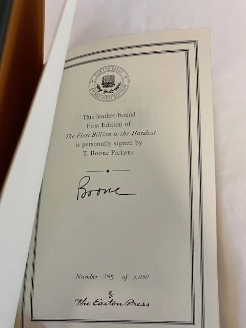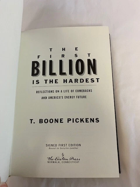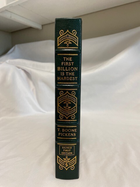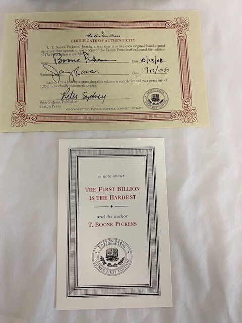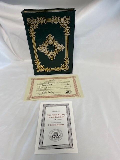 With a Plan for Reducing U.S. Oil Dependency It’s never too late to top your personal best. Now eighty years old, T. Boone Pickens is a legendary figure in the business world. Known as the “Oracle of Oil” because of his uncanny ability to predict the direction of fuel prices, he built Mesa Petroleum, one of the largest independent oil companies in the United States, from a $2,500 investment. In the 1980s, Pickens became a household name when he executed a series of unsolicited buyout bids for undervalued oil companies, in the process reinventing the notion of shareholders’ rights. Even his failures were successful in that they forced risk-averse managers to reconsider the way they did business. When Pickens left Mesa at age sixty-eight after a spectacular downward spiral in the company’s profits, many counted him out. Indeed, what followed for him was a painful divorce, clinical depression, a temporary inability to predict the movement of energy prices, and the loss of 90 percent of his investing capital. But Pickens was far from out. From that personal and professional nadir, Pickens staged one of the most impressive comebacks in the industry, turning his investment fund’s remaining $3 million into $8 billion in profit in just a few years. That made him, at age seventy-seven, the world’s second-highest-paid hedge fund manager. But he wasn’t done yet. Today, Pickens is making some of the world’s most colossal energy bets. If he has his way, most of America’s cars will eventually run on natural gas, and vast swaths of the nation’s prairie land will become places where wind can be harnessed for power generation. Currently no less bold than he was decades ago when he single-handedly transformed America’s oil industry, Pickens is staking billions on the conviction that he knows what’s coming. In this book, he spells out that future in detail, not only presenting a comprehensive plan for American energy independence but also providing a fascinating glimpse into key resources such as water—yet another area where he is putting billions on the line. 260 pages, signed 795 of 1,050. This book is in "great" condition, well-kept in smoke free, pet free home.
