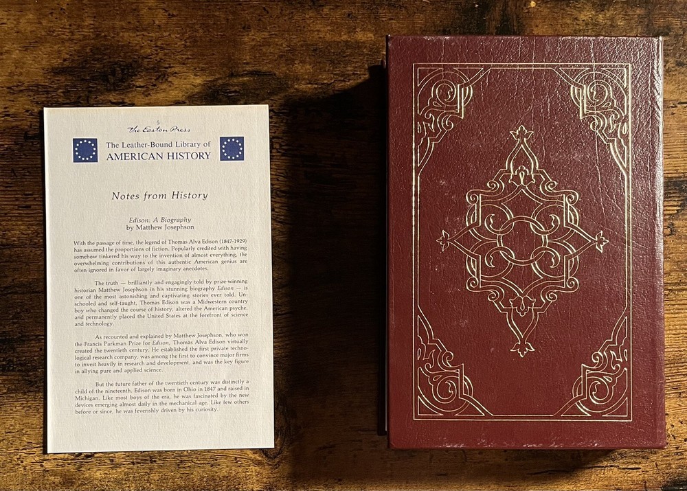 This luxury collector's edition book by Matthew Josephson, titled Edison, tells the fascinating story of one of America's greatest inventors. Published by Easton Press in Norwalk, Connecticut in 1986, this original edition is a must-have for any lover of biography and autobiography. The binding is made of high-quality leather, adding to the book's overall luxurious feel. This limited edition book is a great addition to any collection with its special attributes. It is in excellent condition and has not been personalized. The book is written in English and covers the life and work of Thomas Edison, an American inventor whose contributions changed the world. This is a great addition to any North American history collection.