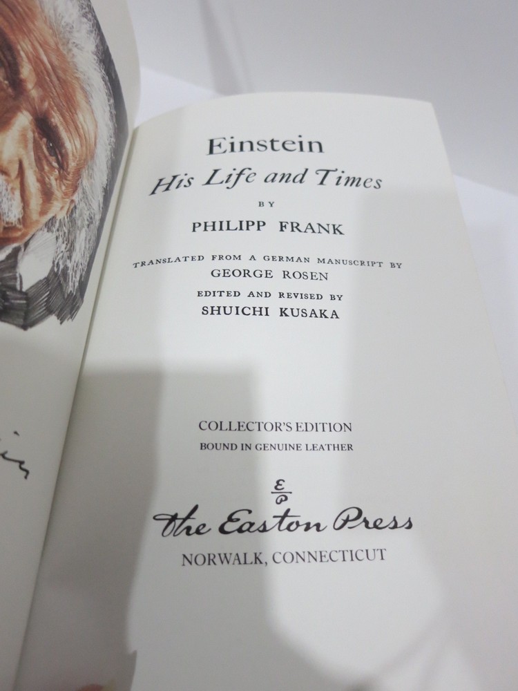 Einstein His Life & Times by Philipp Frank, 1947, leather collector's edition with gold gilded page edges, hardcover, 300 pages, like new, never read, non-smoking...