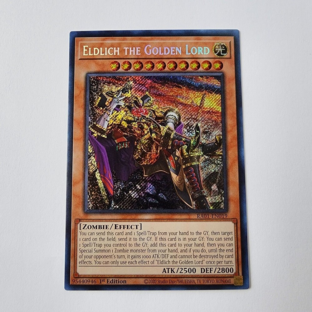 Eldlich The Golden Lord (Alt Art) - RA01-EN019 - Secret Rare - NM - Yugioh 25th Anniversary Rarity Collection Don't forget to click on the store icon for more great deals on singles, playsets, and sealed products.
