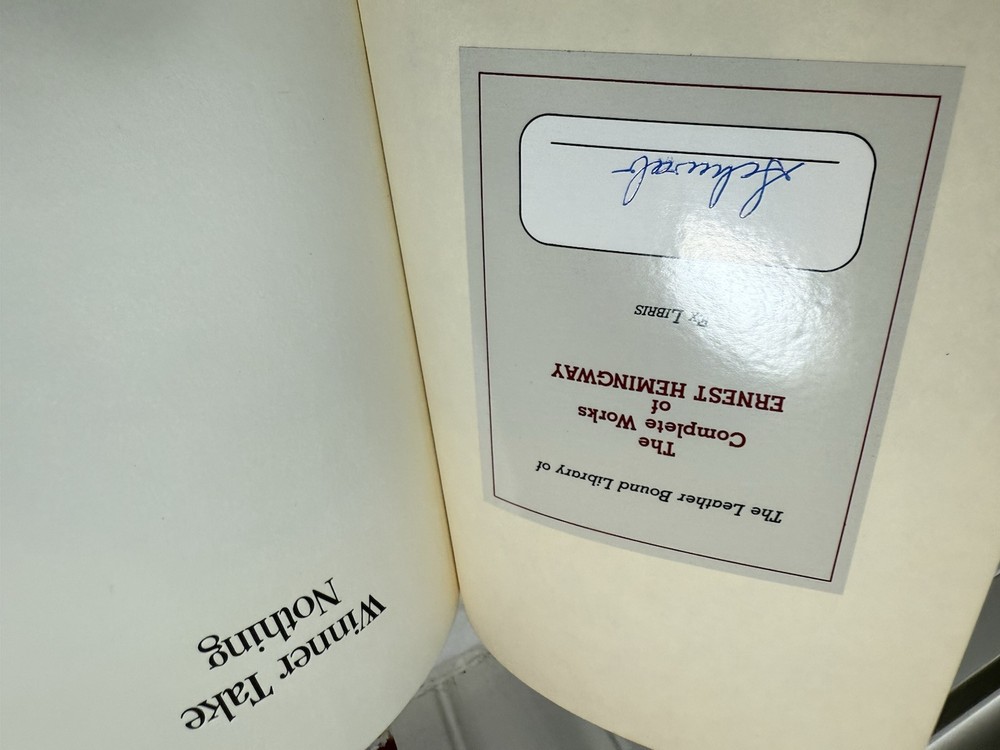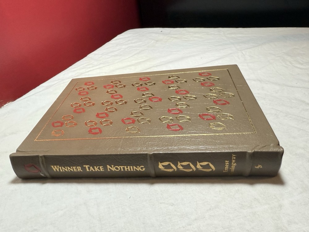 This is a collector's edition of Ernest Hemingway's "WINNER TAKE NOTHING" published by Easton Press in 1990 in Connecticut. The book is in English and focuses on the topic of Literature, specifically in the North American region. It is a 1st edition with illustrations by Alan Phillips, bound in leather. The book is not signed or personalized and was manufactured in the United States.