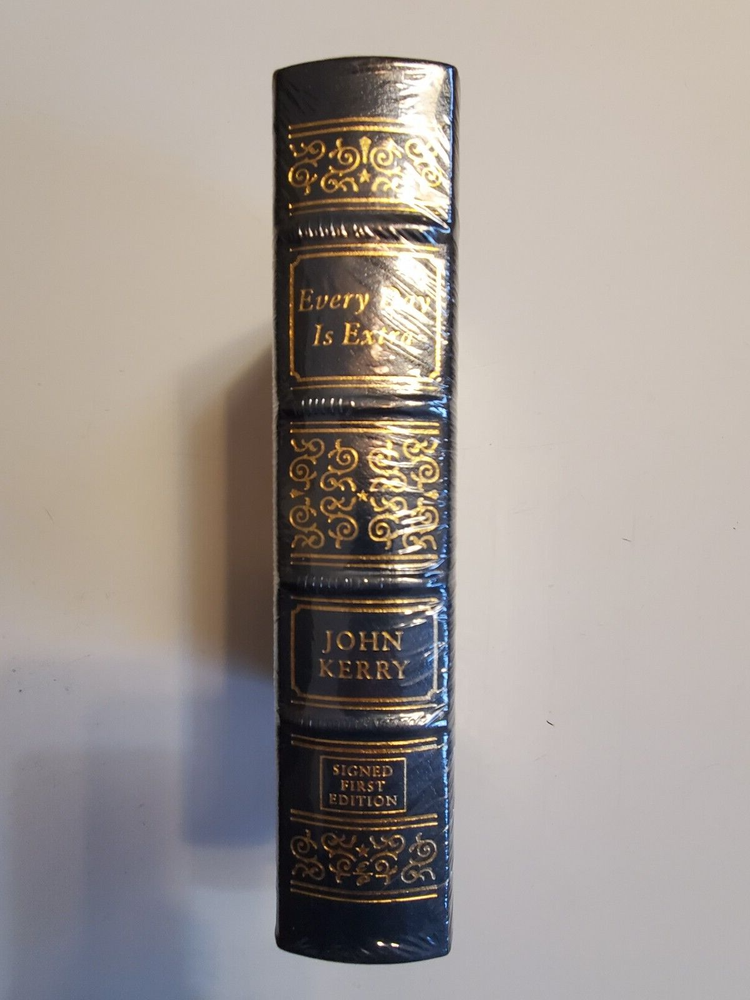 Every Day is Extra by John Kerry. Like new Easton Press Signed First Edition, in original shrink wrap. This hardcover book boasts the features that are expected from Easton Press: signed by the author, bound in genuine leather, with gold lettering and decorations on the cover and spine, gilded page edging and a sewn-in satin bookmark. Decorative pattern is the same on front and back cover. The text is printed on archival quality acid-neutral paper. These books are a pleasure both to display and to read.