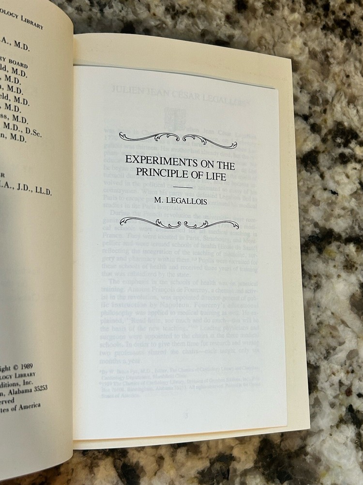 Experiments on the Principle of Life by Le Gallois; Leatherbound Facsimile, VG+. Shipped with USPS Media Mail....