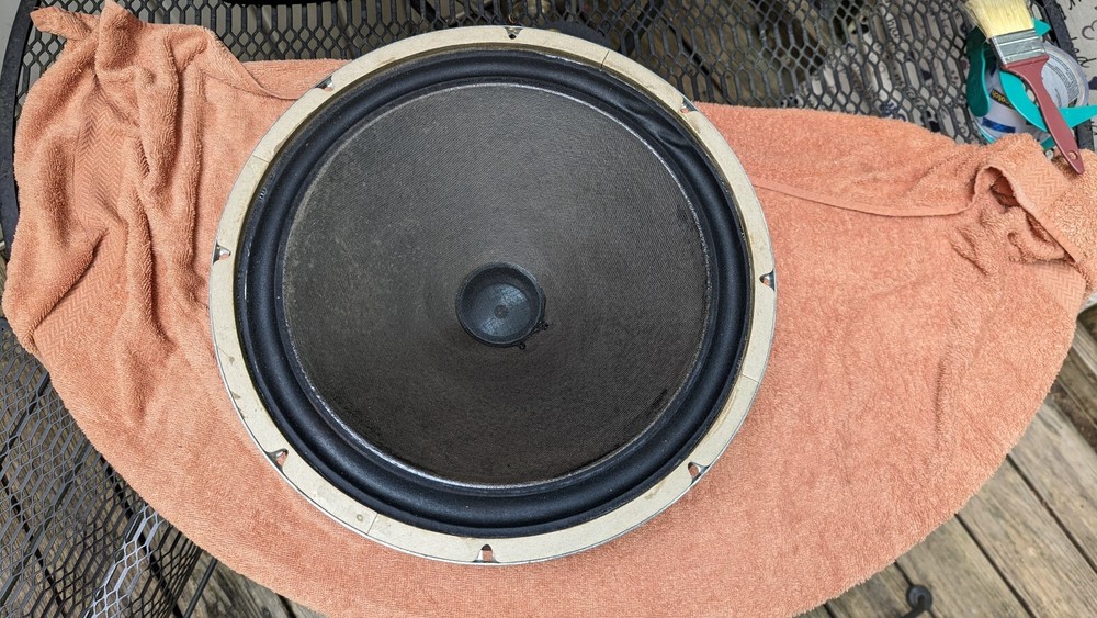 Vintage 15-in woofer from the classic xp10 speaker. Manufactured in East Orange, New Jersey Works perfectly Measures as a 4 ohm speaker. Please see the pictures for description. I believe the model is a w123a There is one place where there's a slight ripple in the cloth surround, nothing major and does not appear to impact the sound or movement. Has a little bit of dust, smears, corrosion on the metal, etc Comes from a smoke-free home. Thank you..