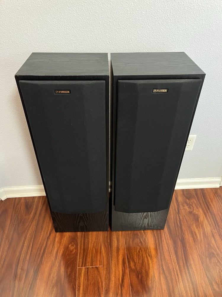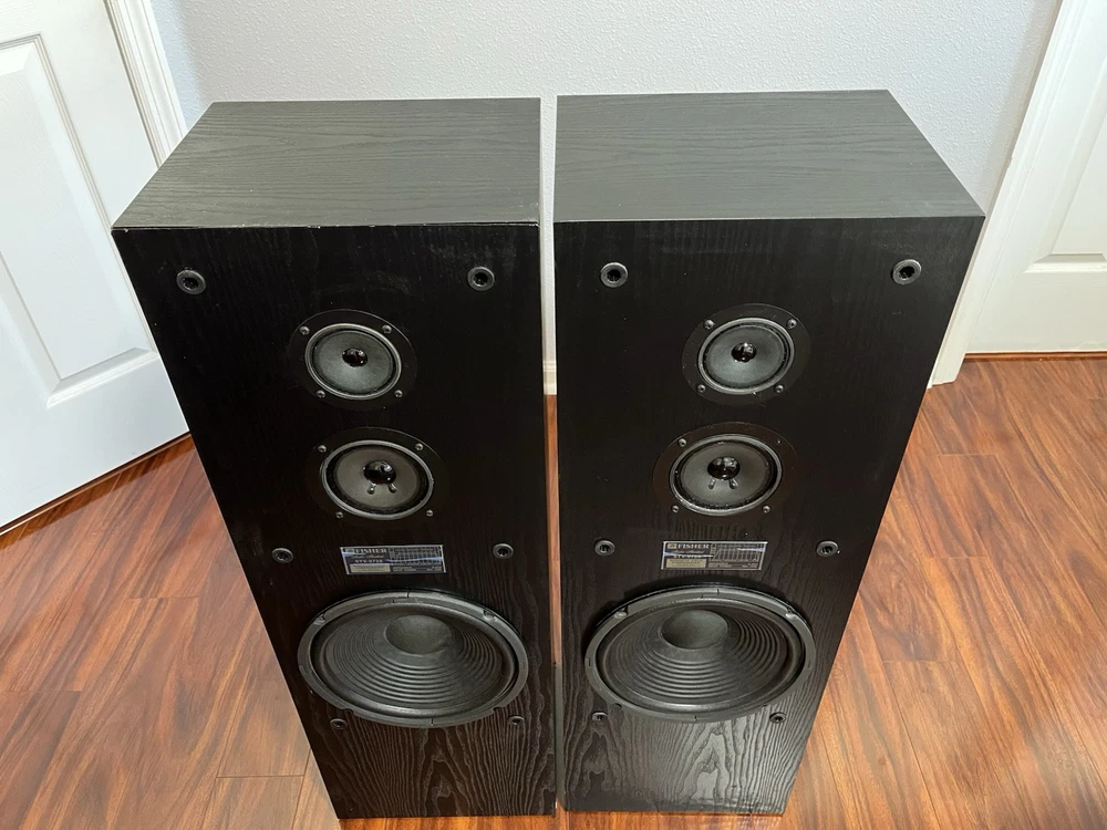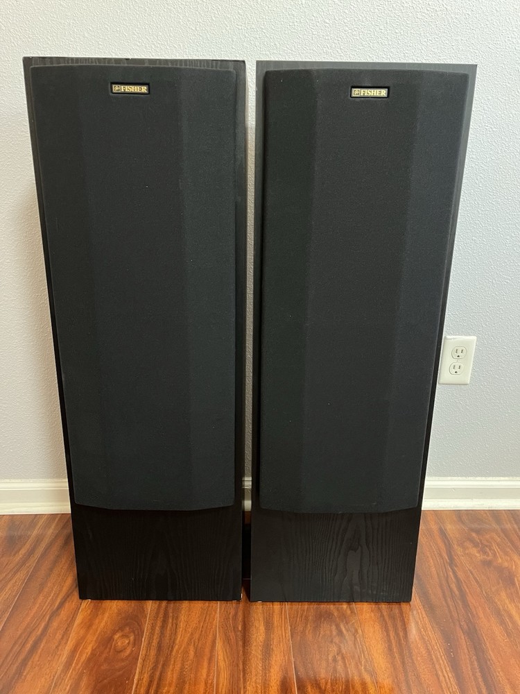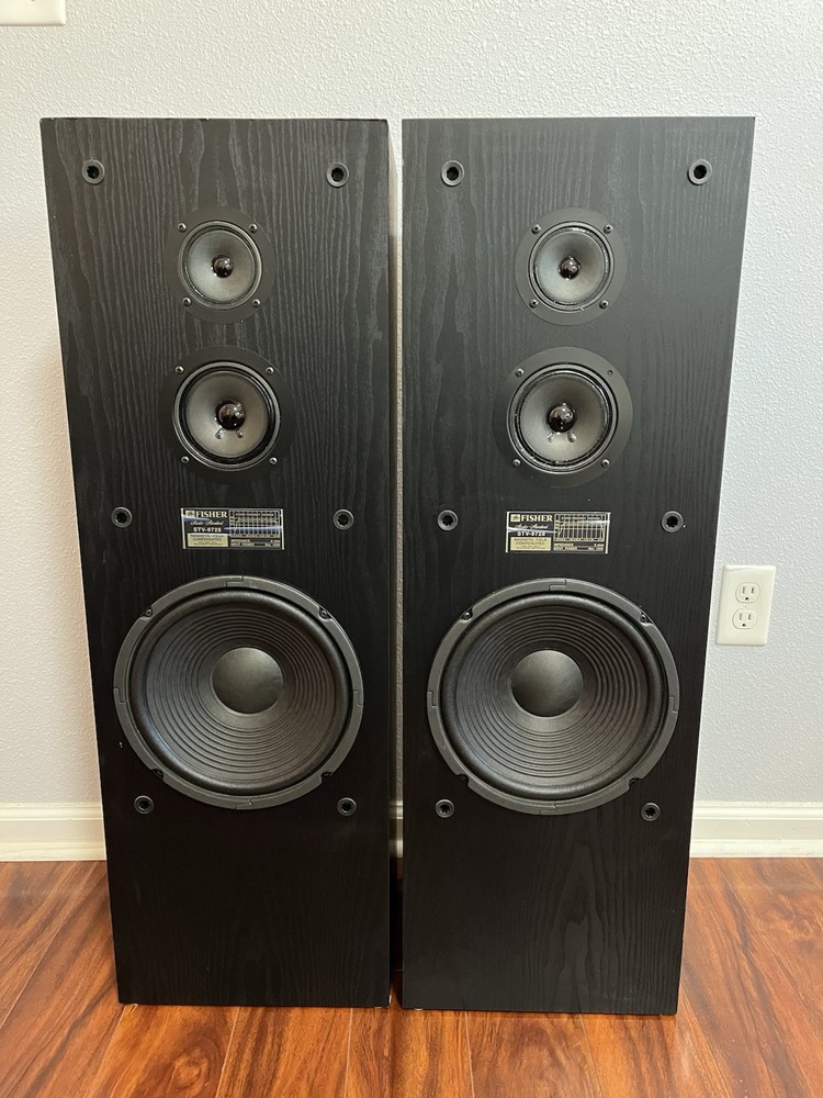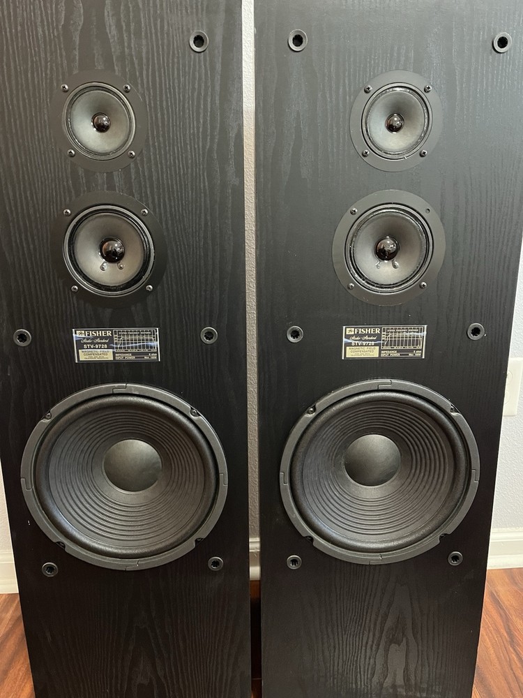 FISHER 3-WAY FLOORSTANDING TOWER SPEAKERS STV-9728 BLACK 10 Inch Woofer. Condition is Used. Shipped with USPS Ground Advantage.