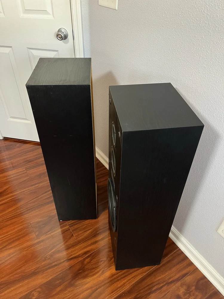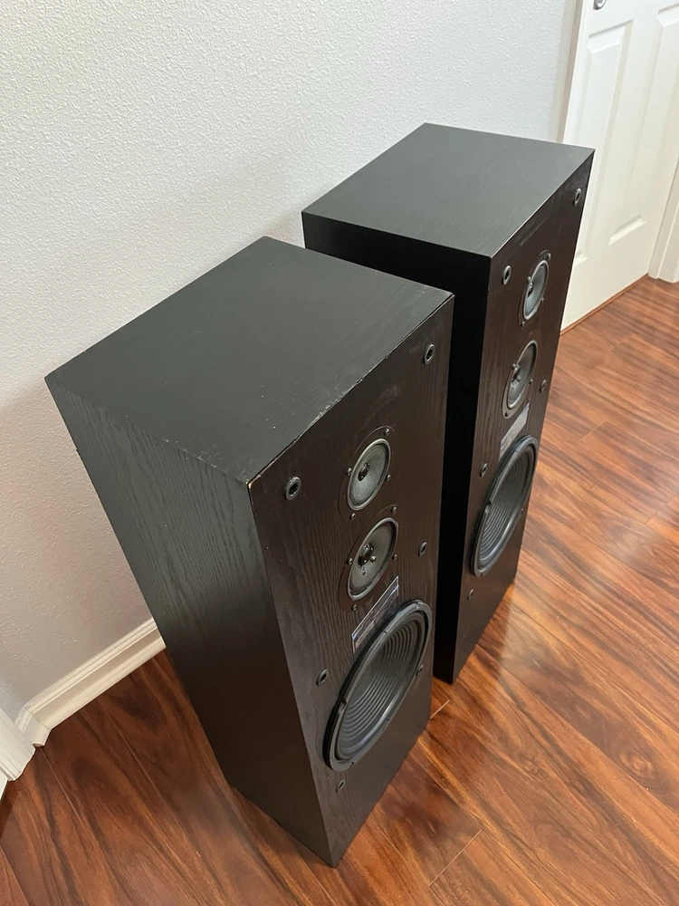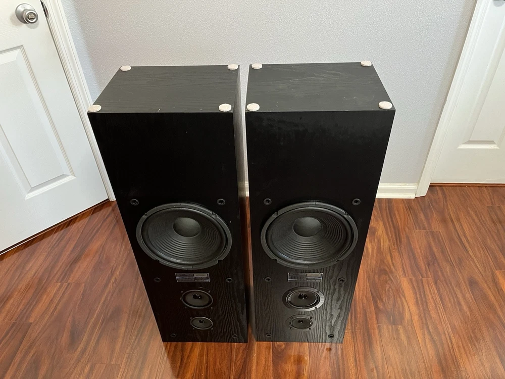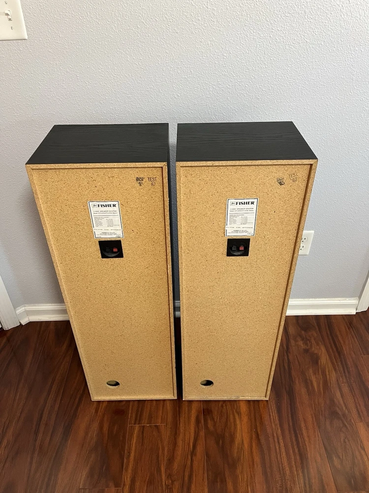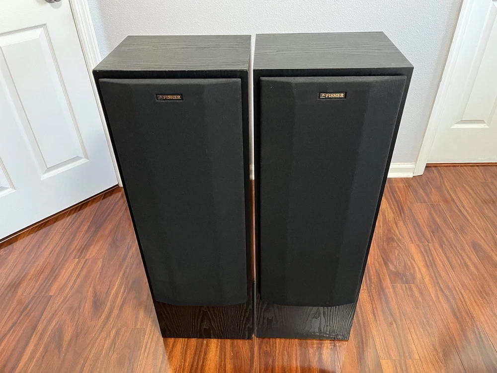 FISHER 3-WAY FLOORSTANDING TOWER SPEAKERS STV-9728 BLACK 10 Inch Woofer. Condition is Used. Shipped with USPS Ground Advantage.