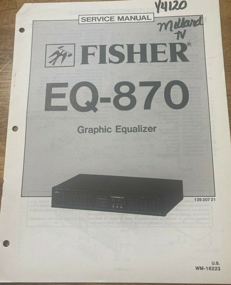 This is for an original FISHER service MANUAL, includes REPAIR INFO, part numbers and SCHEMATIC DIAGRAMS MODEL - EQ-870 GRAPHIC EQUALIZER VERY GOOD CONDITION, Doesn't look like it was ever used. WE HAVE NO STEREO UNITS, OR AMPLIFIERS LEFT!!! THESE ARE ALL THE FISHER MANUALS WE HAVE LEFT. IF YOU DON'T SEE IT i DON'T HAVE IT. We closed out our electronic Service Shop a few years ago and are selling off the manuals we have left, some of which are manuals we acquired from other service centers that have closed.. Please check our other auctions for other closeout clearance items. I will be listing them as quick as I can but will probably take several months to list everything we have left. Item will be shipped in an envelope. Shipping is FREE in the 48 States only. $14.02 I nternational shipping. PLEASE check our other auctions. We Give free shipping in the U.S. for each additional manual purchased. Item will be shipped USPS economic shipping and may take 1-9 days. If you want faster shipping please let me know. ITEM IS SOLD "AS IS"! Thank You for the bid, and GOD BLESS THE U.S.A .