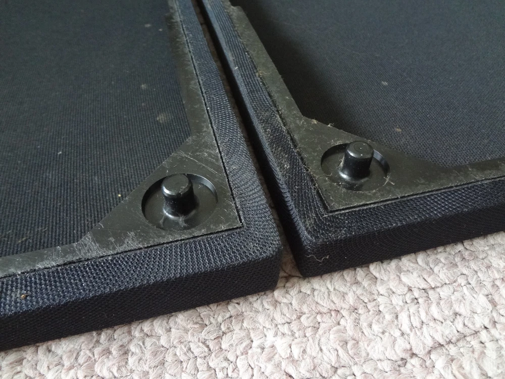 Fisher STV-758 grill / grille protectors - All connecting pegs are intact This grill set was removed from a working Fisher STV-758 enclosure. A couple of minor tears are found on one cover (shown in last photos). No major damage found, minor blemishes may be present consistent with vintage age and previous use.