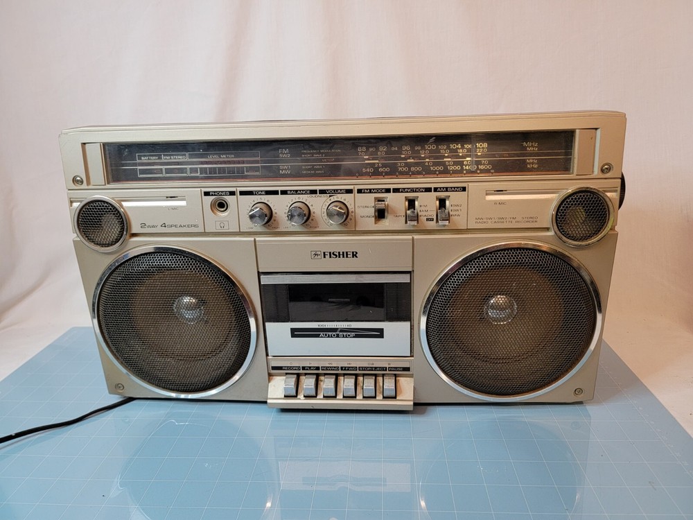 Radio works, tape rewinds, it does not FFW or play so I assume it needs a new belt. In overall good condition. See photos Up for sale is a rare Fisher PH-212K Stereo Boombox from Japan. This high fidelity radio is a must-have for collectors. Don't miss out on your chance to own this amazing piece of audio history. I put it as for parts not working, because the tape part needs some repair. Sold as is.