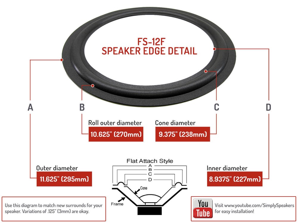 Home About Us Store Policy Contact us Repair Videos FAQs New-Edge-It Foam Kits by Brand New-Edge-It Foam Kits by Size Diaphragms Speaker Reconing Kits Speaker Grills & Grill Cloth Passive Radiators Repair Kits For Bose 901 & 802 Speaker Accessories Pro Grade Adhesives Rubber Edge Kits Speaker Dust Caps Speaker Gaskets Send Speakers To Us For Repair Spiders & Misc. Parts Tweeters Midranges Woofers Specials Ferrofluid Kits Factory Parts Leadwire Repair Kits Fuses and Bulbs New-Edge-It Speaker Repair Kit Store Newsletter Add Simply Speakers to your Favorites to receive our email newsletters about new items and special promotions Sign Up FISHER Speaker 12" ST-440,450,456A,661,920 Woofer Foam Edge Repair Kit # FSK-12F Item Description The most common problem with speakers are rotted, torn or damaged surrounds. The surround is the outer suspension part of the cone. Constant vibration, time and the environment cause foam and rubber surrounds to degrade. Cloth and paper surrounds can become brittle. This causes distortion and poor performance. Luckily, our easy to install repair kits will make your old speakers sound just like new! New-Edge-It® speaker repair kits. America's # 1 brand since 1992. See Product Description, Title or the "Fits Models" tab to see speakers listed for this repair kit. Repair kit includes: 2 x made in USA foam surrounds: Outer diameter: 11.625" (295mm), Roll outer diameter: 10.625" (270mm), Cone diameter: 9.375" (238mm), Inner diameter: 8.9375" (227mm) Flat attach Exact dimensions can also be viewed in the photo gallery 1 x MI-3035 rubber based repair adhesive 1 x applicator brush Easy to follow color illustrated instructions FREE technical support and online videos Product Overview: Brand new formula made in USA surrounds last much longer than the originals. We ship the same high quality parts used in the pro audio repair market. We do NOT use generic glues or low quality imported surrounds like others sell. Our exclusive clear drying rubber based repair adhesive is designed for paper, poly, and composite cones. Dries flexible, strong and clear. Kits can be installed without removing the dust caps. Dust caps, shims and gaskets are available for most models if needed. Access to our complete library of how-to speaker repair videos. Fast and FREE shipping to any USA address and worldwide shipping. Economical and environmentally friendly. Save money AND save your speakers. Simply Speakers® - Quality Speaker Parts since 1992! Shipping Info Shipping Info Terms & Conditions About Us Testimonials FAQ Shipping Info We ship all orders within 24 hours of receipt of payment. Most orders ship same day. Weekends & holidays excluded. The address provided by eBay or PayPal will be used for shipment. We are not responsible for wrong or un-deliverable addresses. BE SURE YOU HAVE CORRECT ADDRESS ON FILE! We cannot change the address once your order has been processed through eBay. Please note: Saturday, Sunday and all major holidays do NOT count as shipping days. We ship worldwide (with the exception of a few countries listed on our eBay excluded list) Import taxes, duties, fees, or other charges are NOT included in the item price or shipping charges and are the sole responsibility of the buyer. We will not mark down invoices or claim items as "gifts" or otherwise assist in deceptive international shipping practices. SS Audio speaker foam edge repair kits, diaphragms and other qualified items shown in our listings ship to the USA for free. Free shipping method will be US Mail First Class or Priority service depending on weight and zone. Some items may not quality for free shipping. Shipping charges will appear for those items. Simply Speakers, SS Audio and the US Mail do not guarantee shipping transit times unless special arrangements are made and paid for prior to shipment. If you need overnight or other expedited service please contact us prior to placing your order or choose those options when you checkout. Terms & Conditions Terms & Conditions Please take special care to order carefully and completely. We have thousands of speaker repair parts in stock and not all models are listed for every part we sell. In some cases, you will need to verify the correct parts by removing the defective component from your system first and prior to ordering to determine which model you have. You may need to measure a part of your speaker to determine if the replacement part is compatible. We can help you in determining which parts you need. Please contact us. See our FAQ page for other frequently asked questions. We may ask you to email a photo of your speaker to us for verification. Ask all questions before placing an order. When buying one of our products please note that the item is sold only for the described purpose. We will replace, or exchange only those products which are deemed to be incomplete or defective by a company representative. We gladly accept the return of products that are defective due to defects in manufacturing and/or workmanship for 30 days from the date of purchase. Items that have been mis-ordered or are no longer wanted may be returned for refund or exchange within 30 days from the date of purchase at customer expense. Please note: FREE SHIPPING ITEMS may have our shipping cost deducted from any refunds due to orders made in error, or that are no longer wanted. Returned items must be in new saleable condition with all packaging and contents. Units showing signs of use, ie. solder or screw marks or scratches cannot be returned. A restocking fee may apply. In most cases, no RMA is required, simply include a copy of the sales receipt with your return along with a brief description of the issue. Special order items are NOT returnable. Speakers and parts showing signs of mis-use, overpowering, underpowering (distorted), malfunctioning amplifiers, or improper crossovers will not be covered under warranty. Speakers or parts with burnt voice coils, blistered voice coils, torn con