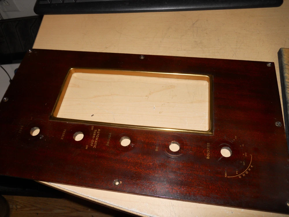 selling one fisher am-fm receiver with a pair of mullard 6bq5 outputs i tested it for a while on a good speaker it did work and sound good it is very clean as shown comes with the faceplate as this was in a console it also has a tv input i tried this as an aux input and it did work good it also has a phono input on the side i did not test it the corde on the back with the plug is the speaker leads the other cord was for a pilot light. still sold as-is because of age