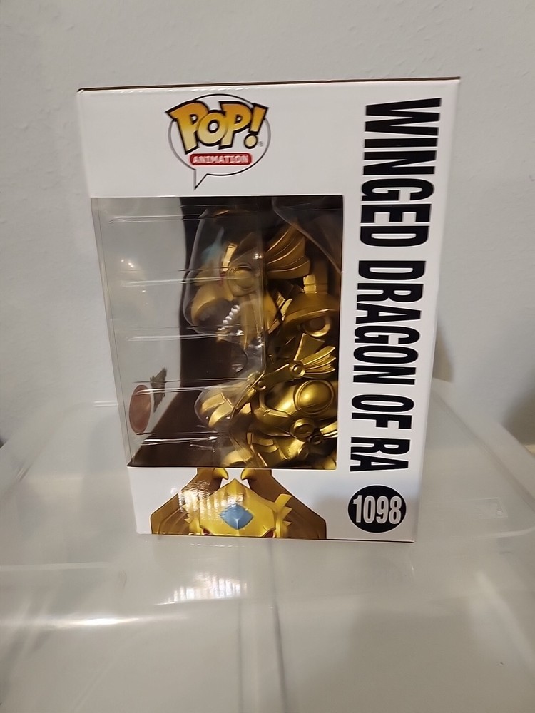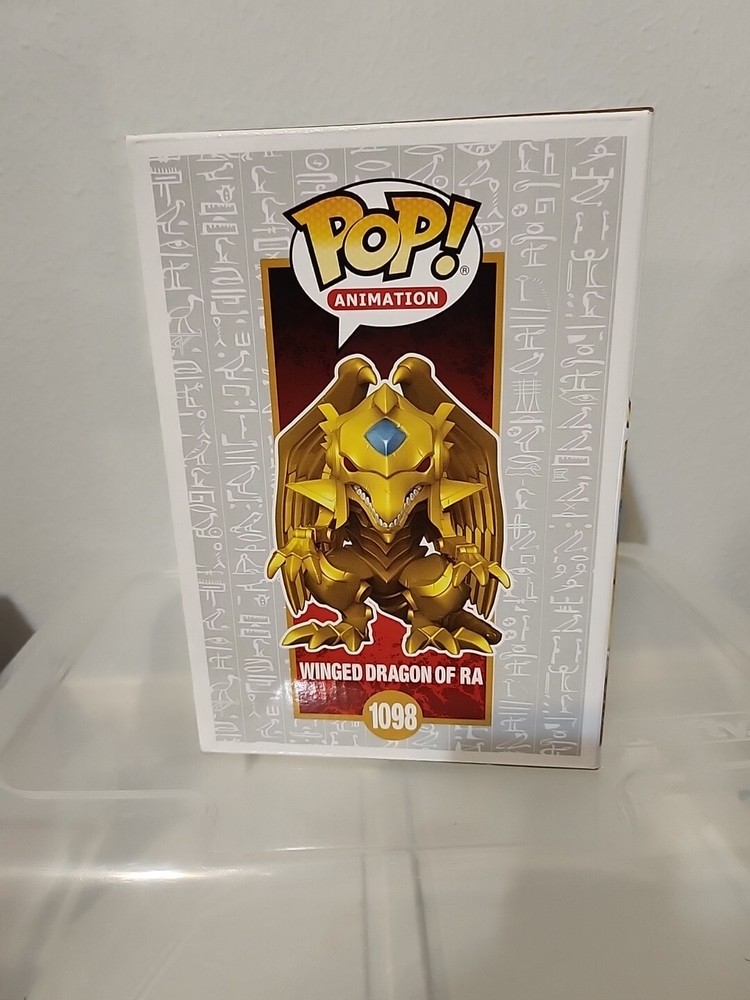 This FUNKO POP! vinyl figure features the iconic Winged dragon of Ra from the popular Yu-Gi-Oh! franchise. With its super size and gold color, it is sure to be a standout addition to any collection. This figure is a GameStop exclusive, making it a rare find for any fan of the series. The packaging is original and unopened, ensuring the integrity of the product. The Funko collection is known for its high-quality and detailed collectibles, and this item is no exception. Perfect for fans of the Yu-Gi-Oh! TV/streaming show and collectors alike, this FUNKO POP! figure is a must-have for any serious collector. New in box **see pictures Will be shipped in protective case
