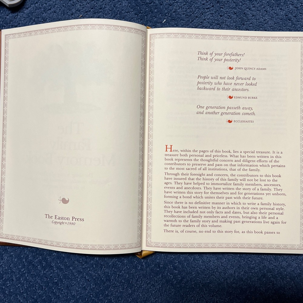 Family Memory Book Easton Press Hardcover 1980 Leather & Ribbon Gold Gilt New.
