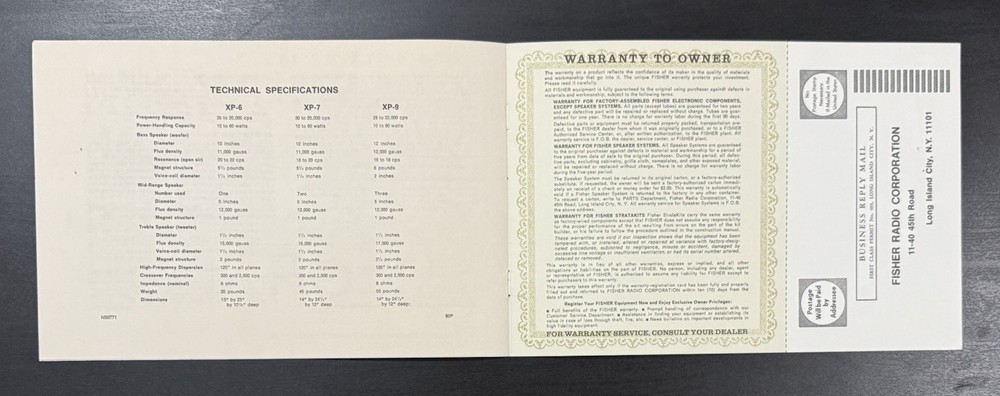 Vintage Fisher Bookshelf Free Piston 3-Way Speaker Systems Operating Instructions Manual and Warranty. Good pre-owned condition, as shown.