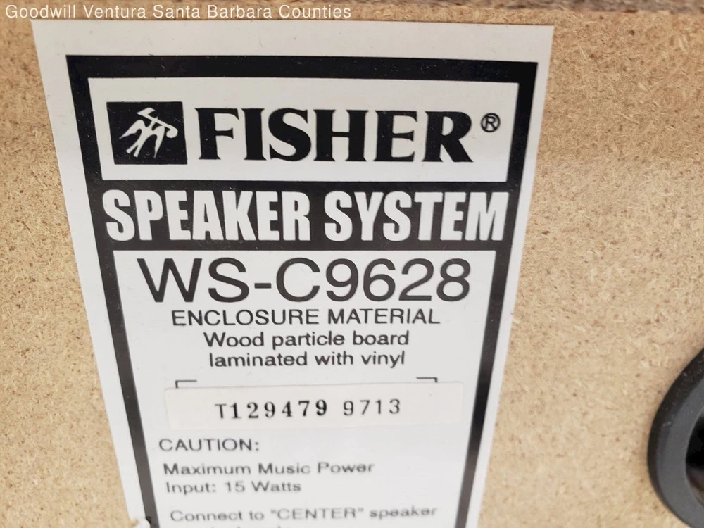 Our mission is to provide vocational and educational opportunities to eliminate barriers to employment, strengthen communities and help peple in need reach their full potential through the power of work. DESCRIPTION Up for Sale Is Used Fisher Center Speaker WS-C9628 - Tested This item is in used condition. Please refer to the photos for completeness, appearance, and details. SOLD AS IS. Item tested working Brand Fisher Model WS-C9628 Connectivity Wired Type Center Speaker *Please see additional pictures & read full description below for possible condition notes or issues.* Please check the pictures BEFORE purchasing. If you have any questions on confusion, please ask BEFORE you purchase. Please, read the following very carefully BEFORE you make any purchase. Our Mission: Goodwill Industries of Ventura and Santa Barbara Counties serves the community by helping people increase their economic independence through training, education, and employment. Thank you for your support of our Mission! Please read and understand the full description, ask all questions prior to bidding. We encourage you to "Get Estimated Shipping and Handling" by clicking on the link above. For service, please enter a Support Ticket via your "Customer Service" tab. Customer Service Hours of Operation: Monday through Thursday 8:00 am - 3:00 pm Pacific Standard TimeItems are sold AS-IS, as described. Unless otherwise noted, items are NOT tested or guaranteed to function. No artwork items have been authenticated. ALL jewelry grab bags and large jewelry lots are Sold AS IS, NO REFUNDS or exceptions. Items are normally in used condition unless noted and donated to Goodwill Industries of Ventura and Santa Barbara Counties, Inc. in order to continue our mission of helping those with disabilities and other barriers find employment. SHIPPING We accept payment only through PayPal (Verified/Confirmed Address only). If you have an unconfirmed address with PayPal you will need to provide confirmed address to PayPal. In some cases we will allow local pickup. Please send an e-mail though E-Bay for inquiry. We do charge $4 and reserve the right to charge more for larger orders. Shipping charges are not refundable under any circumstances. Sellers are not responsible for service transit time. Transit times are provided by the carrier, exclude weekends and holidays, and may vary with package origin and destination, particularly during peak periods.Please allow 2-4 business days after payment is cleared for your order to be shipped. Most order ship within 24 hours. You are responsible for return shipping. Unless otherwise stated above, you may return a part for a refund within 3 days of receiving it.Items generally ship within 6 business days after payment clears. We ship FedEx Ground only. Due to the odd dimensions of certain items, FedEx may charge more for shipping oversize items and calculate that into shipping weight as a "dimensional weight." Paid for items will be shipped as specified within the order and will not be able to be modified or combined after payments have been made.We DO NOT offer Pick-up Service, All orders must be shipped. RETURN POLICY We do NOT offer partial refunds. If you are not pleased with your purchase, contact customer service by email or telephone within 7 days of delivery of your item to arrange for its return and a refund of the original purchase price, less a restocking fee if applicable. Returns will not be accepted without prior authorization you must obtain a return authorization number from our customer service department prior to sending the item back. Please note that we do not refund shipping and handling charges. Request for return must be reported within 7 days of receipt, and the returned merchandise should be postmarked within 14 days of the original shipment. A restocking fee may be charged if your product is not returned in its original condition or is missing packing material, manuals, accessories or parts. Please, read the following very carefully before you make any purchase All of our parts are pulled from working units and Tested Working carefully by Certified Technicians, unless they are listed As Is or Non Working. Before purchasing any part, please, make sure it is compatible or matches your old part and you are confident that by replacing this part will fix the issue. Please, do not buy if you are just guessing or not sure. Also, most of laptops, Mac and LCD's replacement require lot of experience. If you bought the wrong item, we will be happy to take it back but you must send it back to us within 3 days and the item must be in the same/original condition, must match the serial number on the invoice and our warranty sticker must have not been tempered with. There could be many possible reasons for your system/device to not work properly even after replacing a part. It is hard for us to identify the exact reason(s) unless we have the whole system/device here for an inspection by our technician. Please, make sure you agree with and understand the above statements before placing your order. Warranty Policy: Verify model compatibility prior to bidding. If the product received is not as advertised, a replacement will be issued. We are not responsible for item incompatibility. Buyer should read all descriptions carefully. Return/Refund Policy: If you are not satisfied with product. It can be returned within 14 days. When the product is returned, we will verify serial number, do our inspection and refund money (excluding shipping handling). Customer will be responsible to ship it back. (Including shipping charges). CONTACT US We can be contacted at any time through eBay messages if you have any questions, comments or product requests. We will respond to you within 24 hours and do our best to help you out! We encourage our customers to contact us with any questions or concerns! We'd like to be sure you are completely satisfied with your purchase. Feedback: Leaving a negative feedback will 