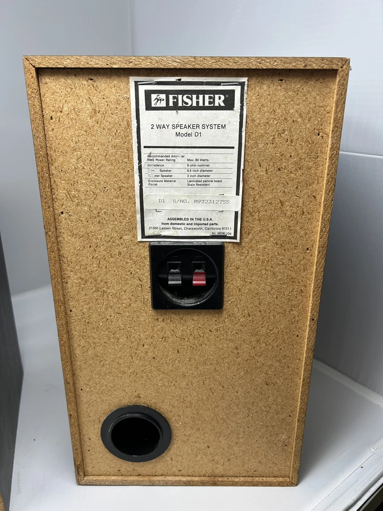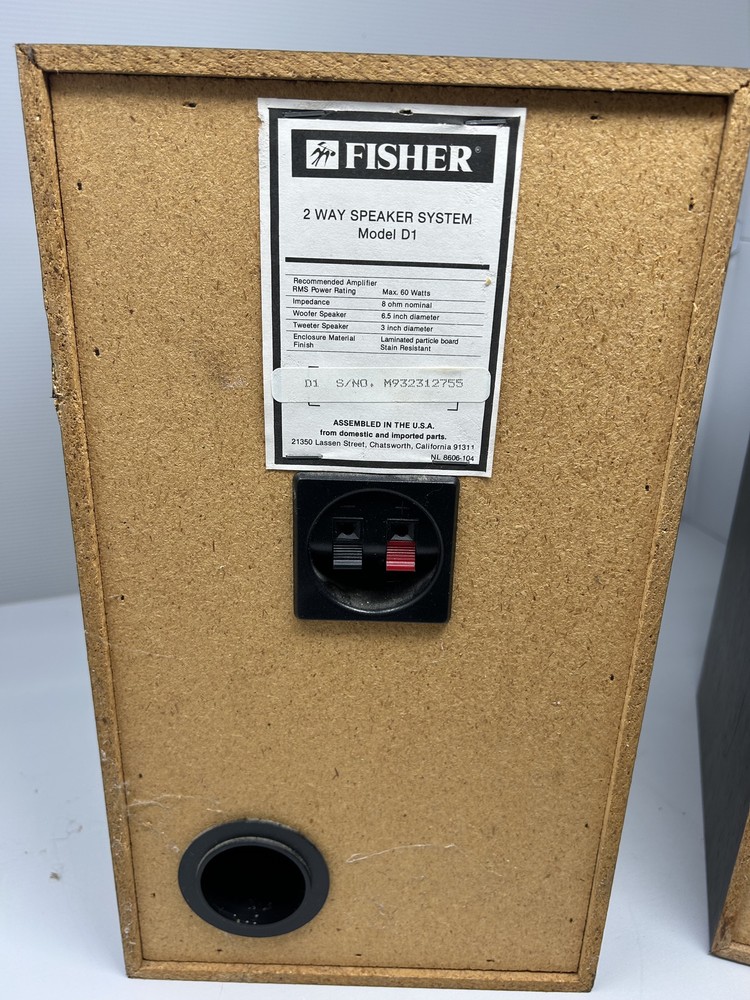 One Pair of Fisher D1 speakers. Tested Ohms @ 8, hooked to a Pioneer SX-205 and they sound great. Not tested in any other capacity. No Vintage Fisher set up would be complete without These.